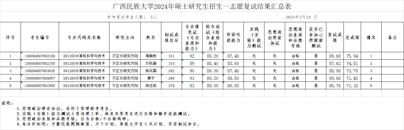 2024年硕士研究生招生一志愿复试结果汇总表(公司公布)