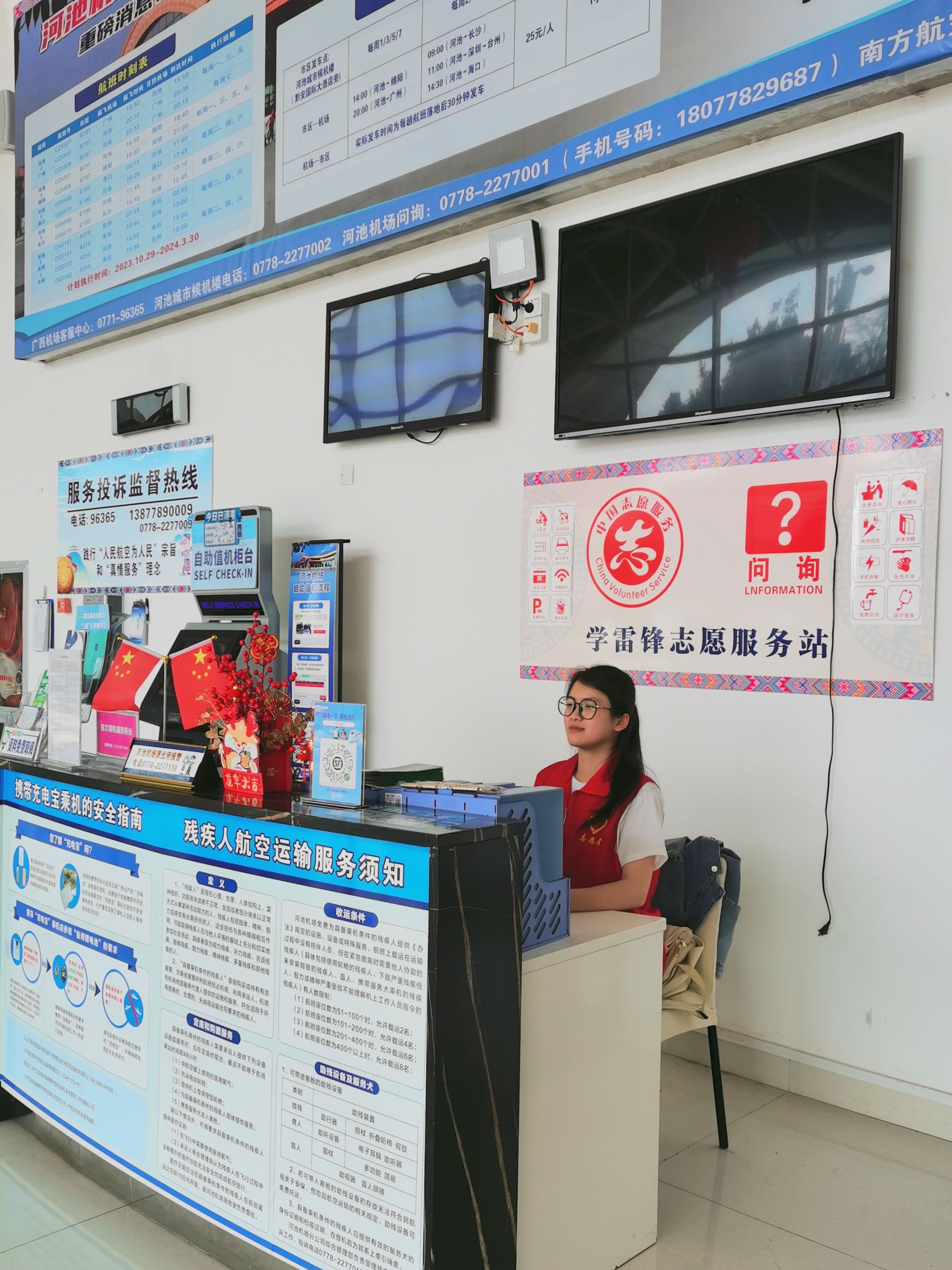 杨宏源在岗等待旅客问询