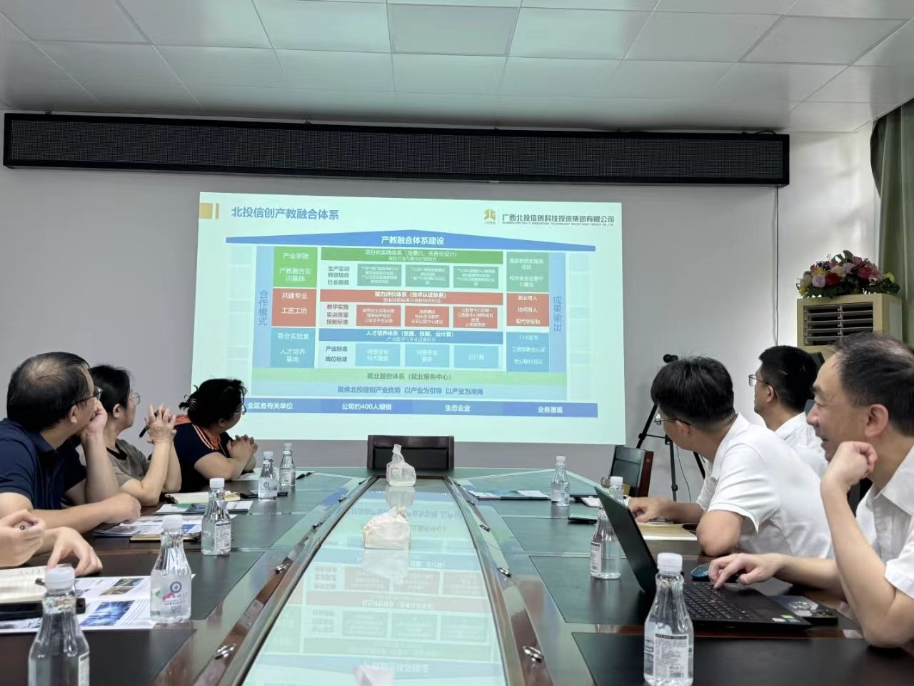 4月26日,公司与广西北投信创科技投资集团有限公司在博达楼405室召开校企合作洽谈会。公司经理葛丽娜、网络工程与信息安全系主任刘勇及系部全体教师、广西北投信创科技投资集团信创事业部副总监程钰海及产教融合基地主任张文慧参会。