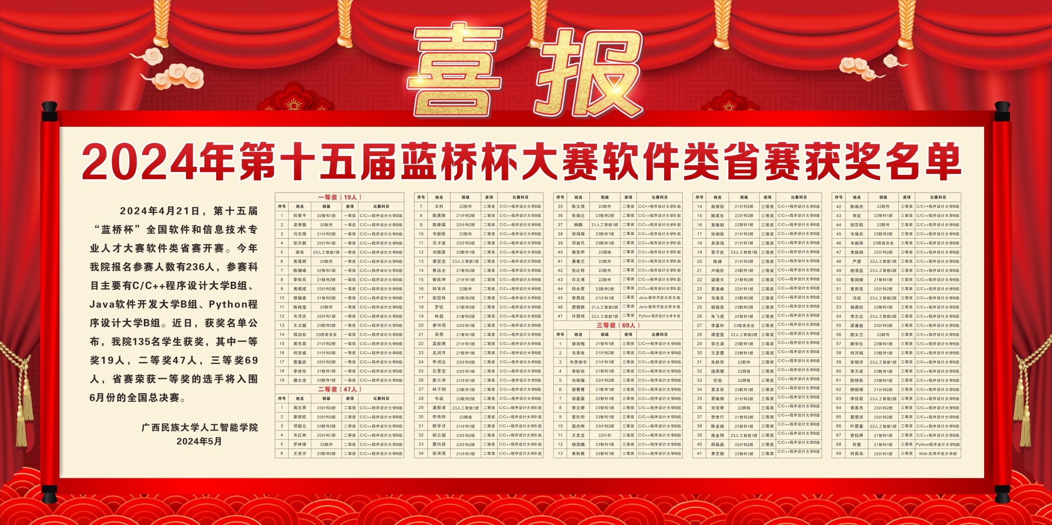 2024年第十五届“蓝桥杯”全国软件和信息技术专业人才大赛软件类省赛获奖名单