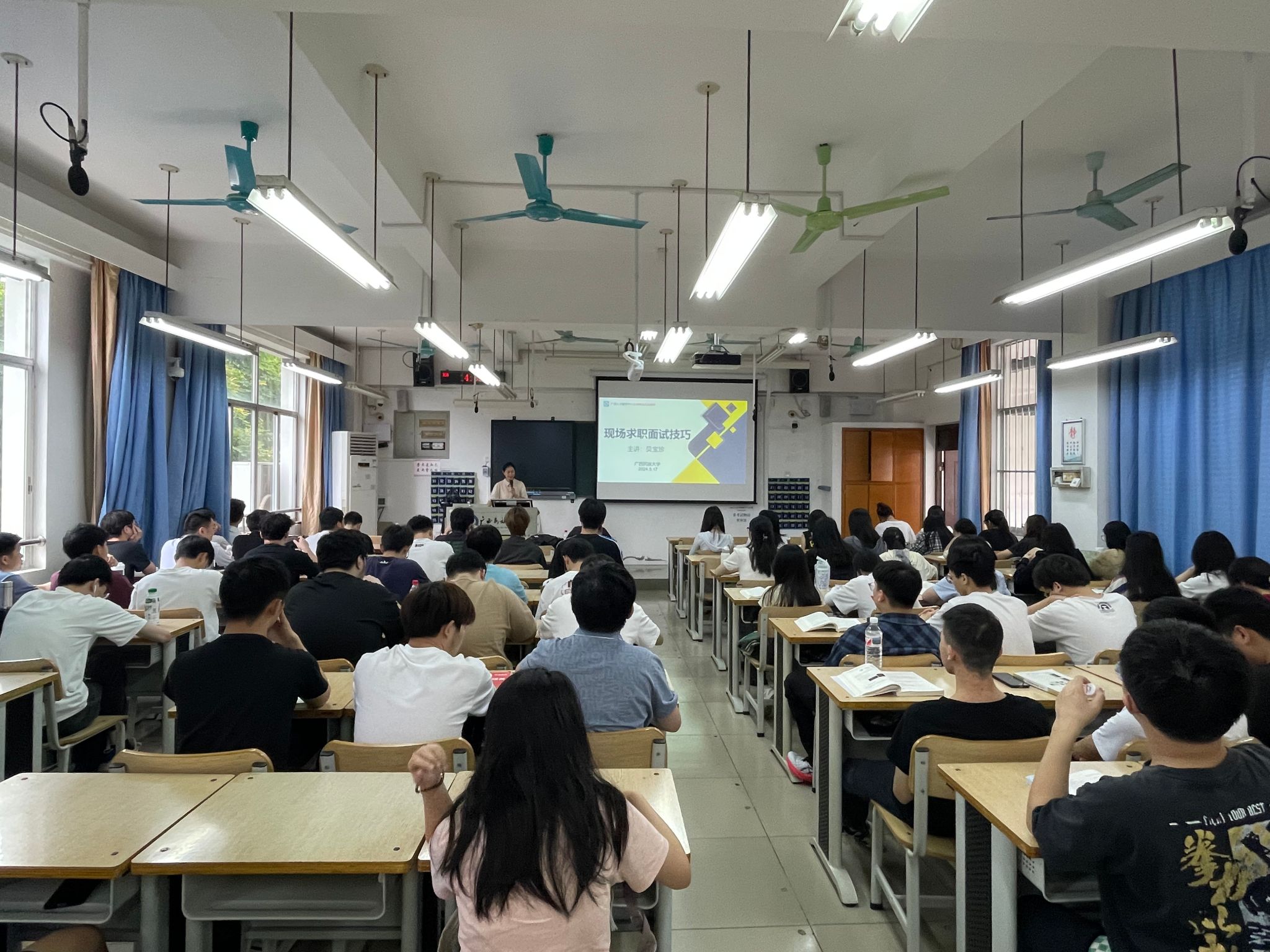 5月17日下午,我院在学友楼306室开展《现场求职面试技巧》就业指导讲座,讲座由广西高校毕业生公共就业创业指导团队库导师贝宝珍主讲,2021级人工智能专业全体员工参加讲座。