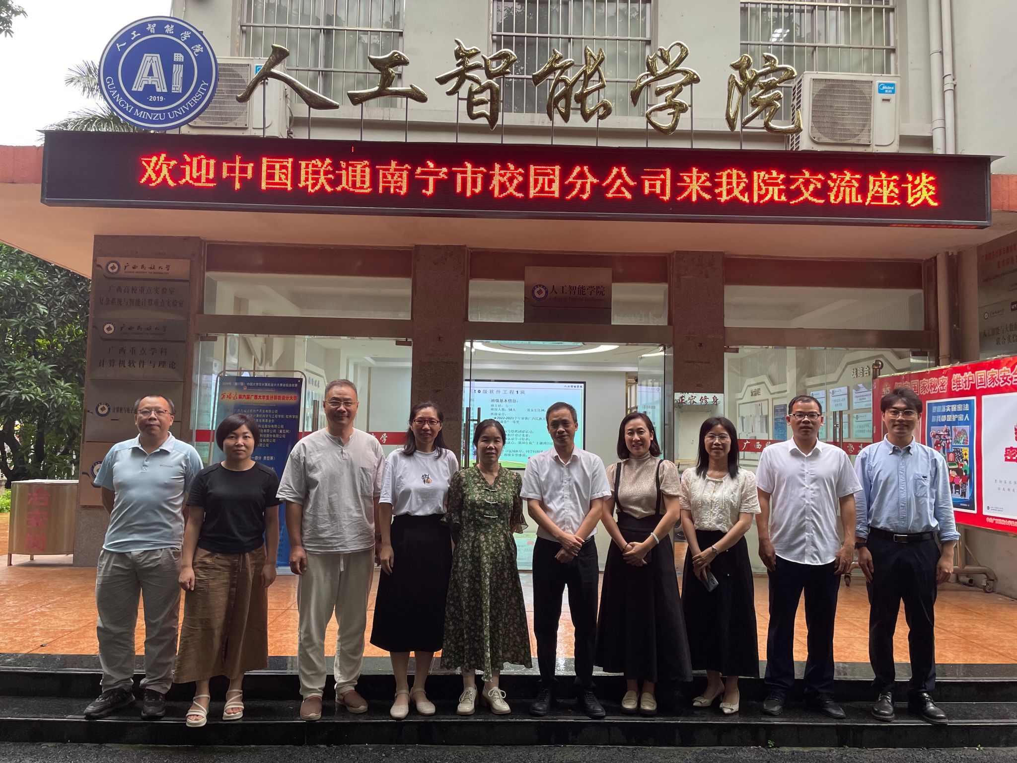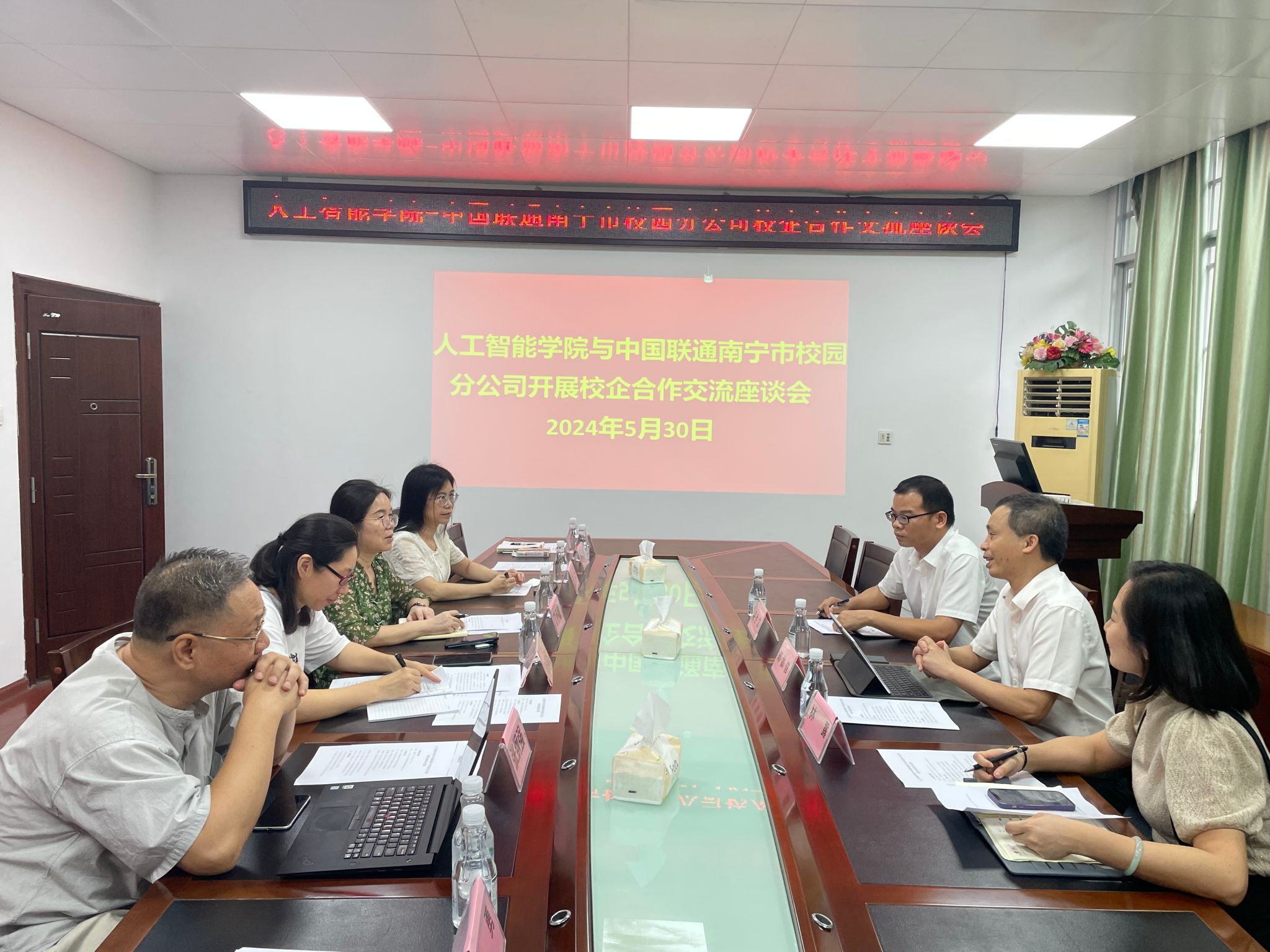 5月30日下午,我院与中国联通南宁市校园分公司在博达楼405室开展交流座谈,中国联通南宁市校园分公司总经理邓如信、校园总监林露、校园经理黄胜立,公司经理葛丽娜、党委副书记孙寿媚、各教研室主任以及就业工作负责人参加座谈。