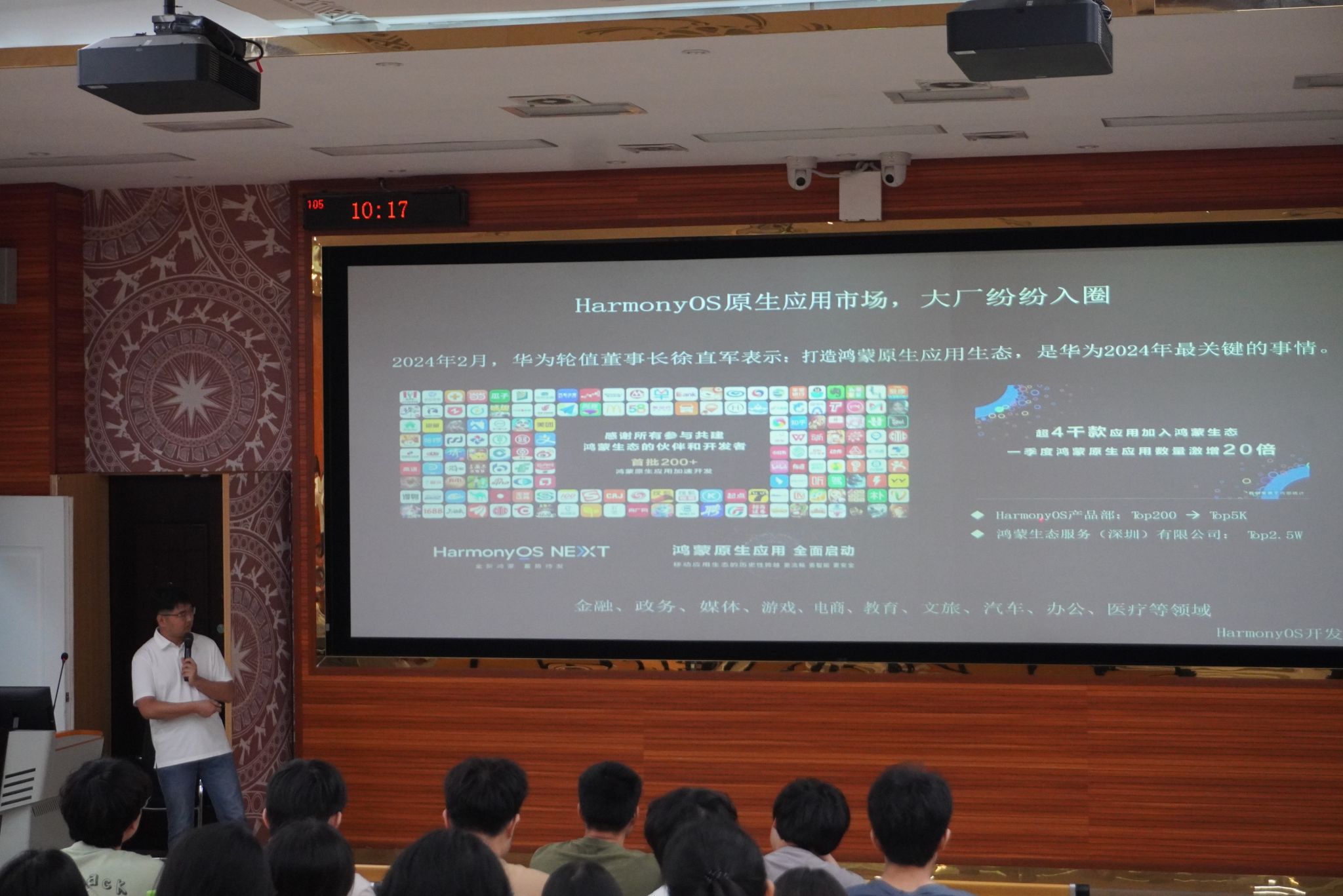 高级工程师李伟给同学们讲解鸿蒙系统的潜力与成效