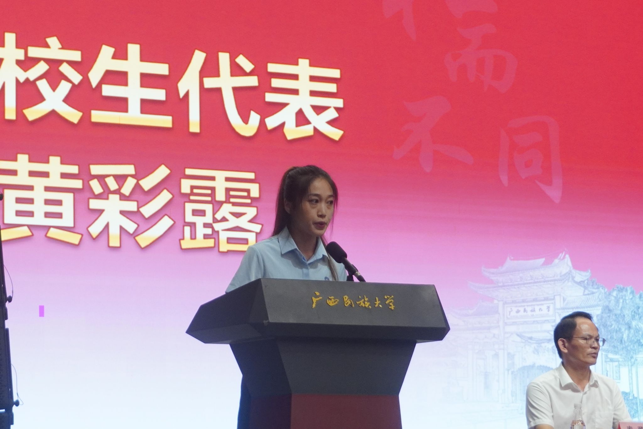 在校生代表黄彩露发言