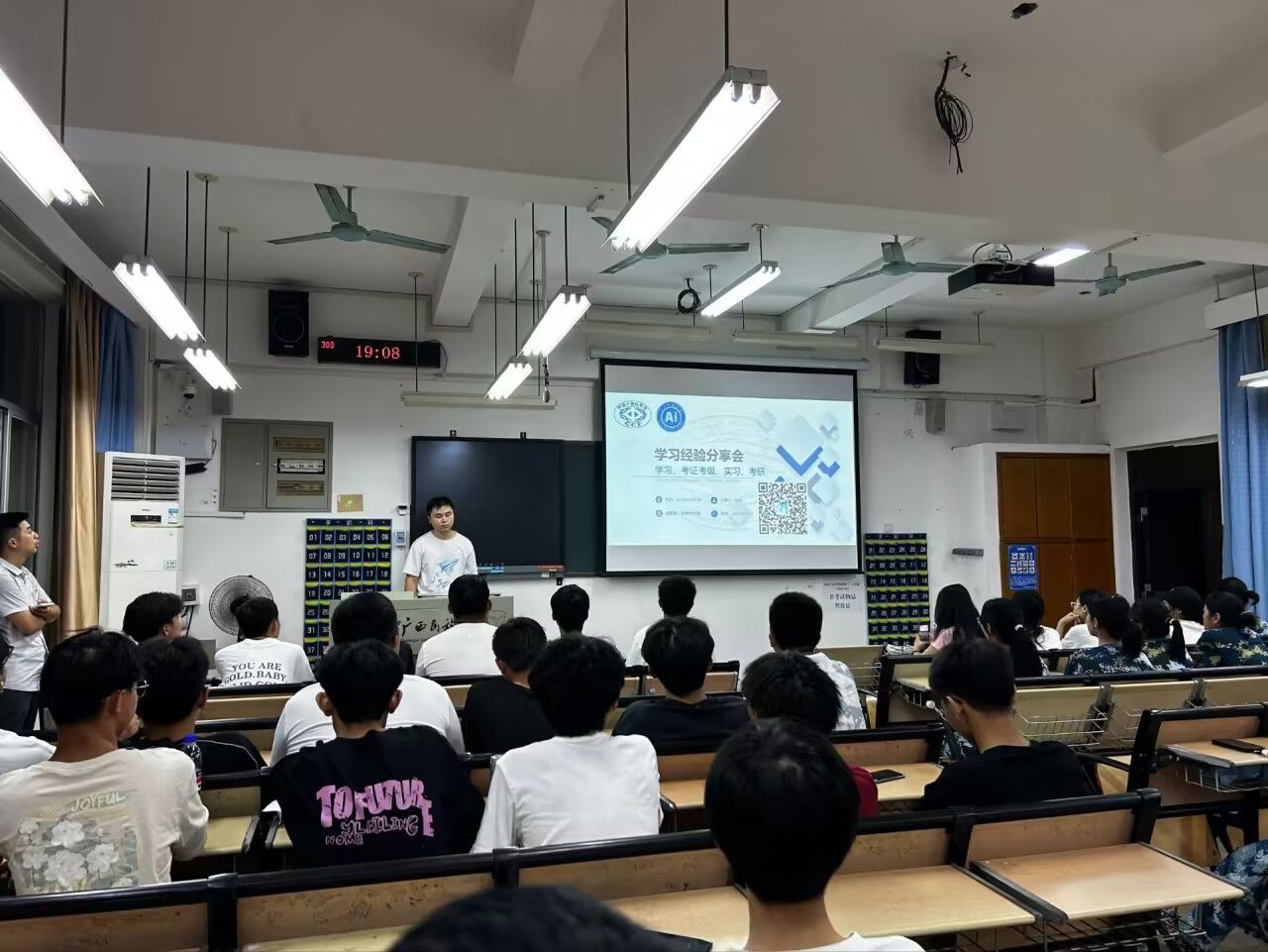 互动交流环节中,同学们踊跃提问,现场氛围热烈。2024级计算机科学与技术4班杨添梅同学表示:“这次分享会不仅让我对老员工活有了更清晰的规划,更珍贵的是,学长学姐们的实战经验,为我指明了前行的方向。”