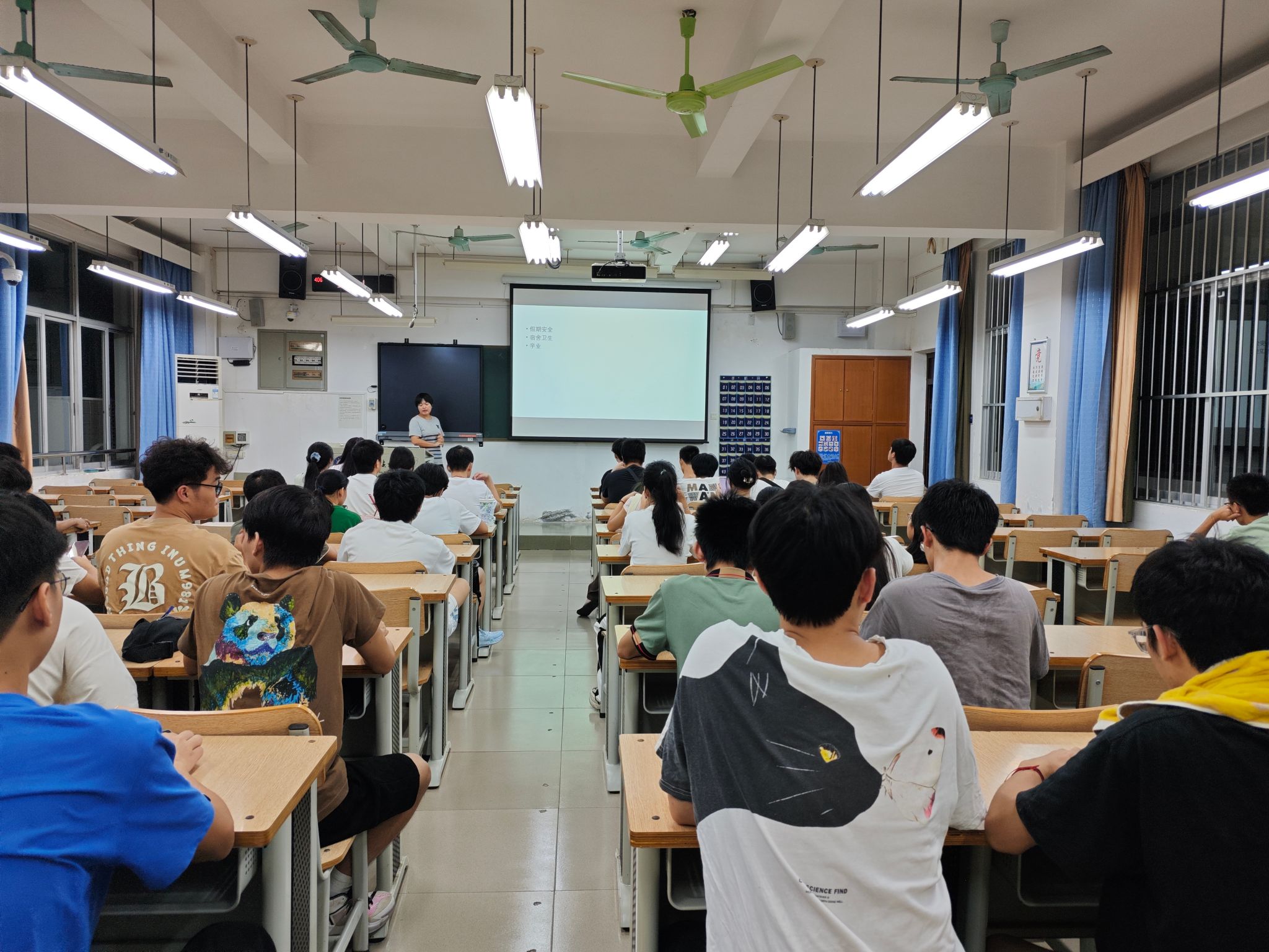 各班班主任、辅导员根据公司公司要求,传达了公司关于国庆节放假安排,强调节假日期间的管理要求和注意事项,着重提醒同学们合理安排假期时间,提前离校的同学要按规定履行请假手续。另外,还从外出安全、消防安全、宿舍安全、交通安全、人身财产安全、网络安全、防自然灾害安全等方面提出了明确要求,强调同学们要结合自身情况,警惕安全风险,学习自我保护技能,将安全意识内化于心、外化于行。