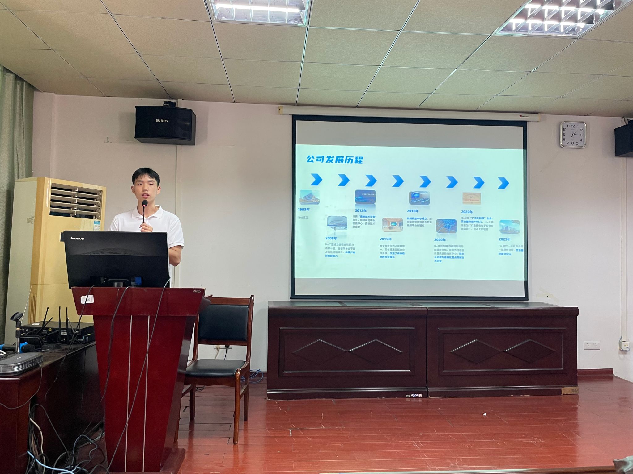 广东保伦电子股份有限公司招聘专员周嘉杰以“宣讲+视频”的形式,全方位的向同学们介绍该公司的基本概况、发展历程、产品体系架构以及详细的产品应用案例等内容,让同学们对该企业有了更为深入的了解。