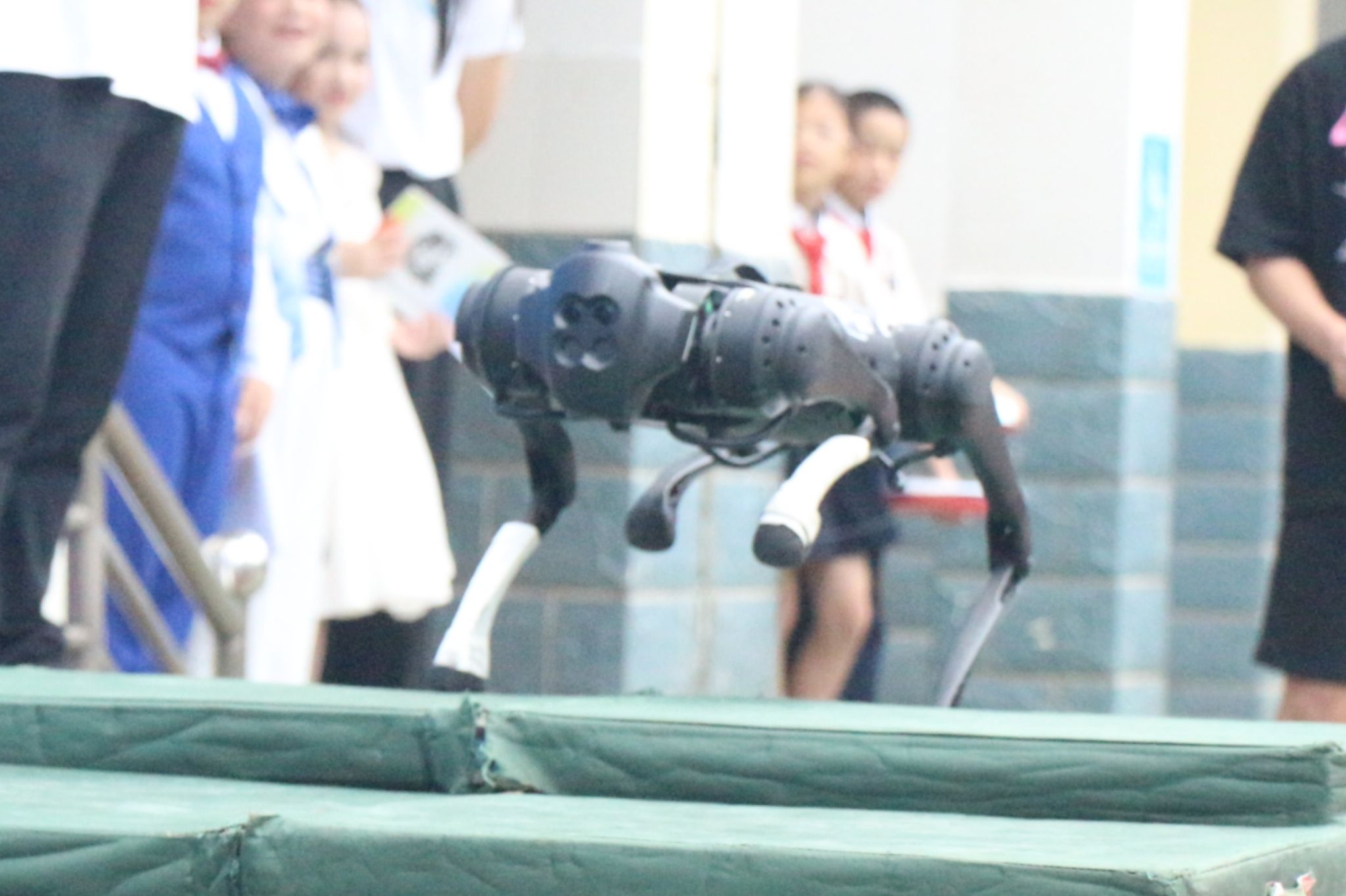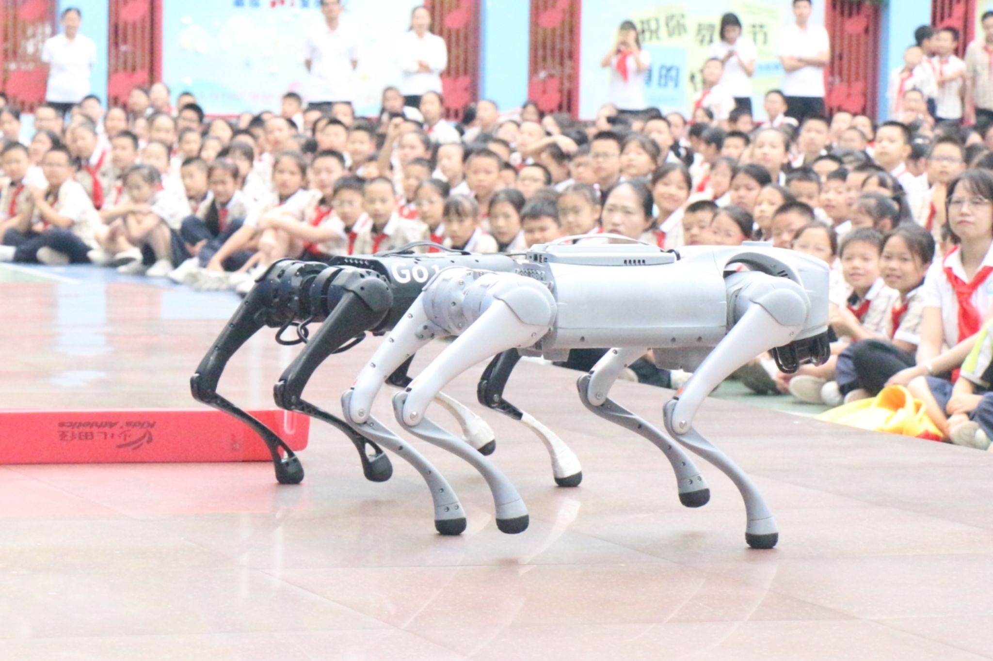 活动中,公司的机器狗“笨笨”和“小黑”朝着小朋友们招手,摆出“拜年”姿势,还展示了它们轻巧的走路步伐、上下楼梯、跳跃等动作。紧接着,公司的机器人展示了一段舞蹈表演,机械的身躯灵动又有趣,令小朋友们忍不住开始模仿,与机器人一起舞动。可爱的“笨笨”“小黑”和跳舞的机器人,都是人工智能不断发展带来的新成果。