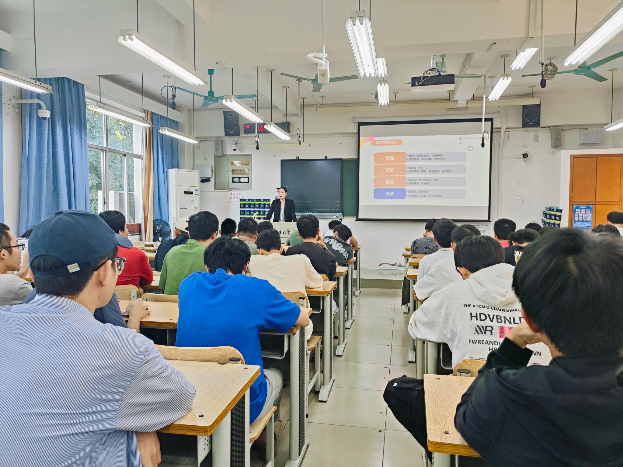 11月21日下午,公司于学友楼306室举办就业面试指导与能力提升专题讲座,讲座由广西壮族自治区就业指导中心蒋敏老师主讲,公司各班级代表到场学习。