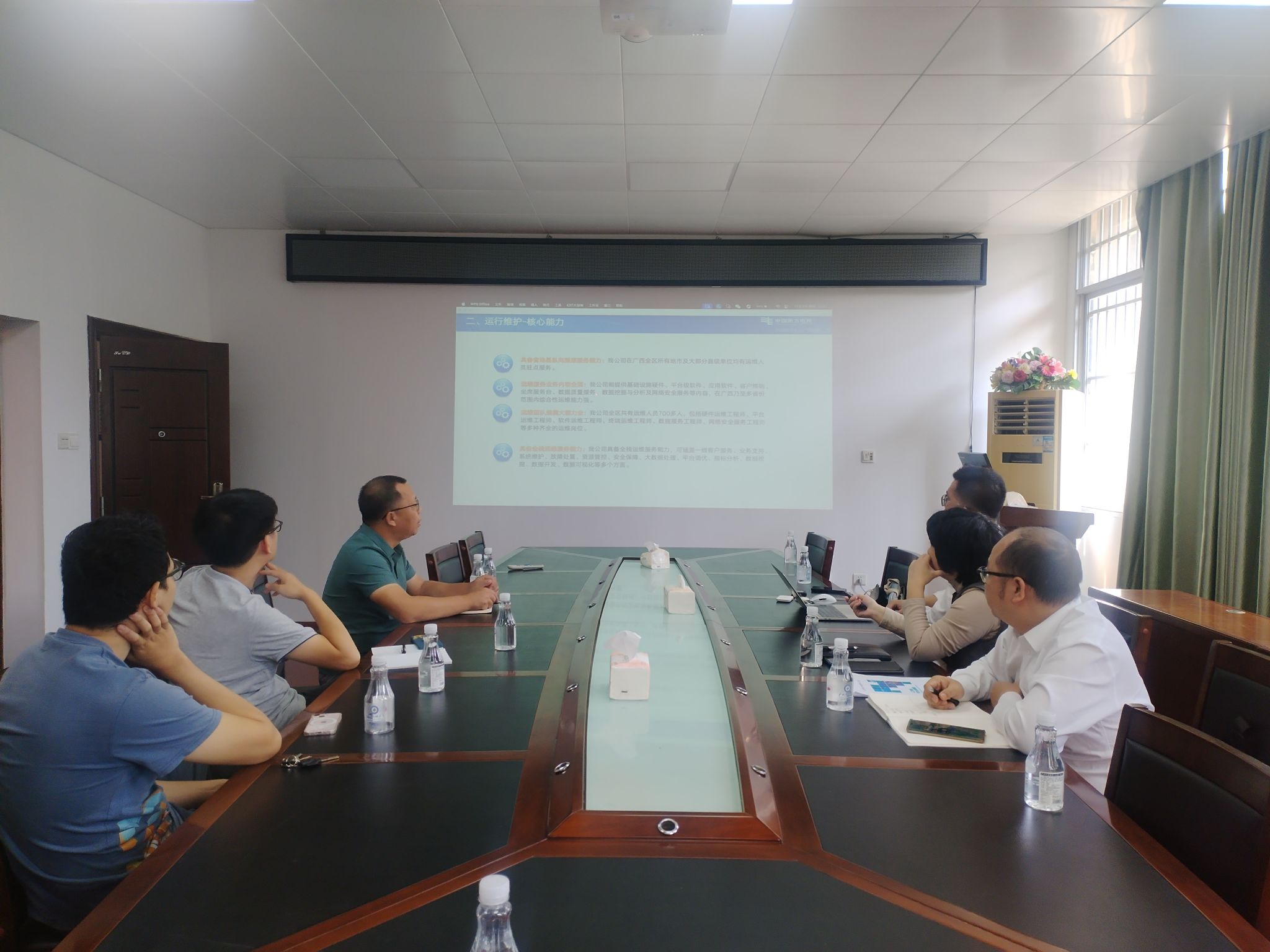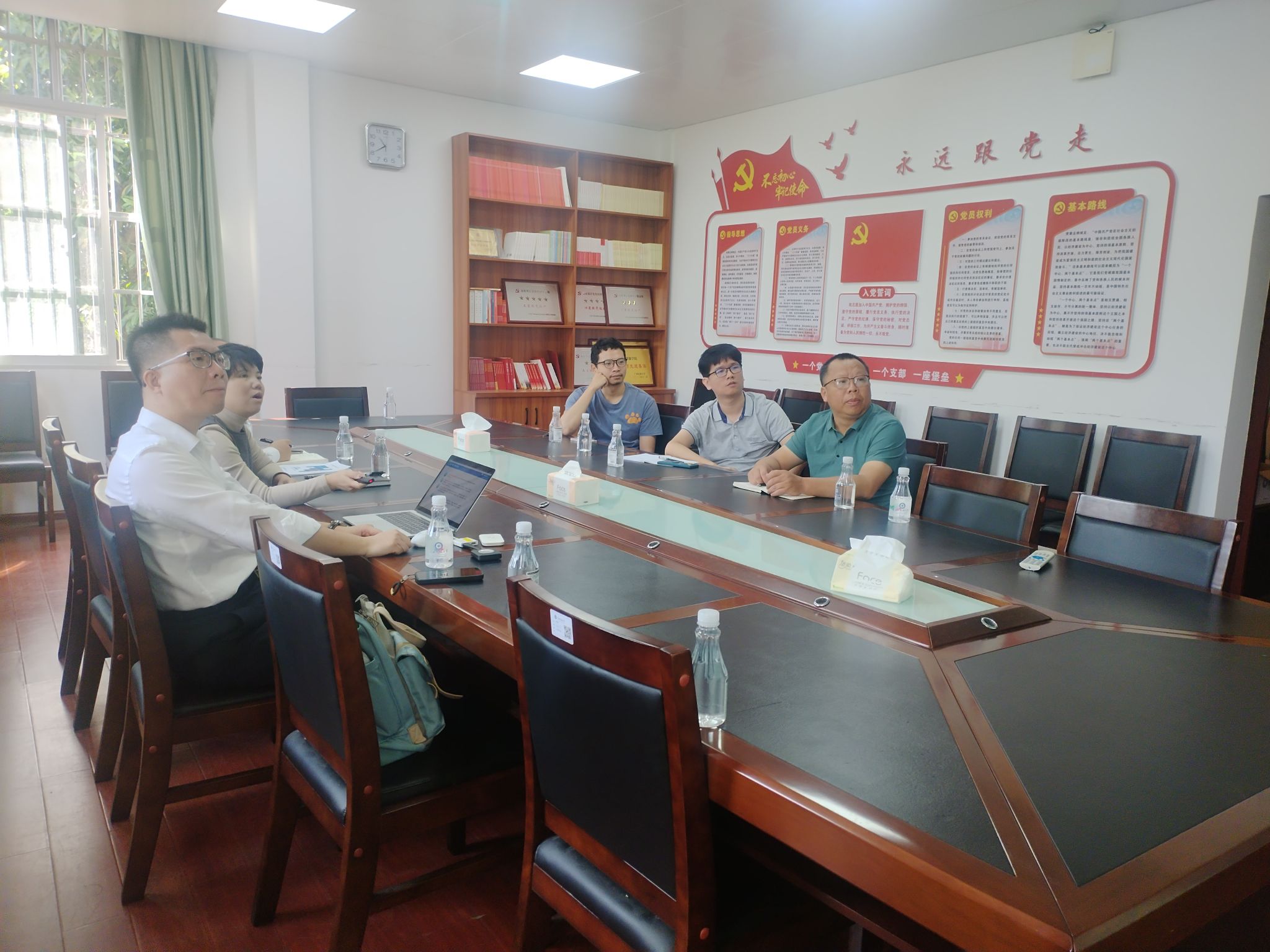 11月7日上午,公司与广西博联公司在博达楼405室开展交流座谈,广西博联公司营销部经理刘巧玲、副经理韦鲰舟、开发组组长林远福、公司网络工程与信息安全系主任刘勇、钟植任及黄治球老师参加座谈。