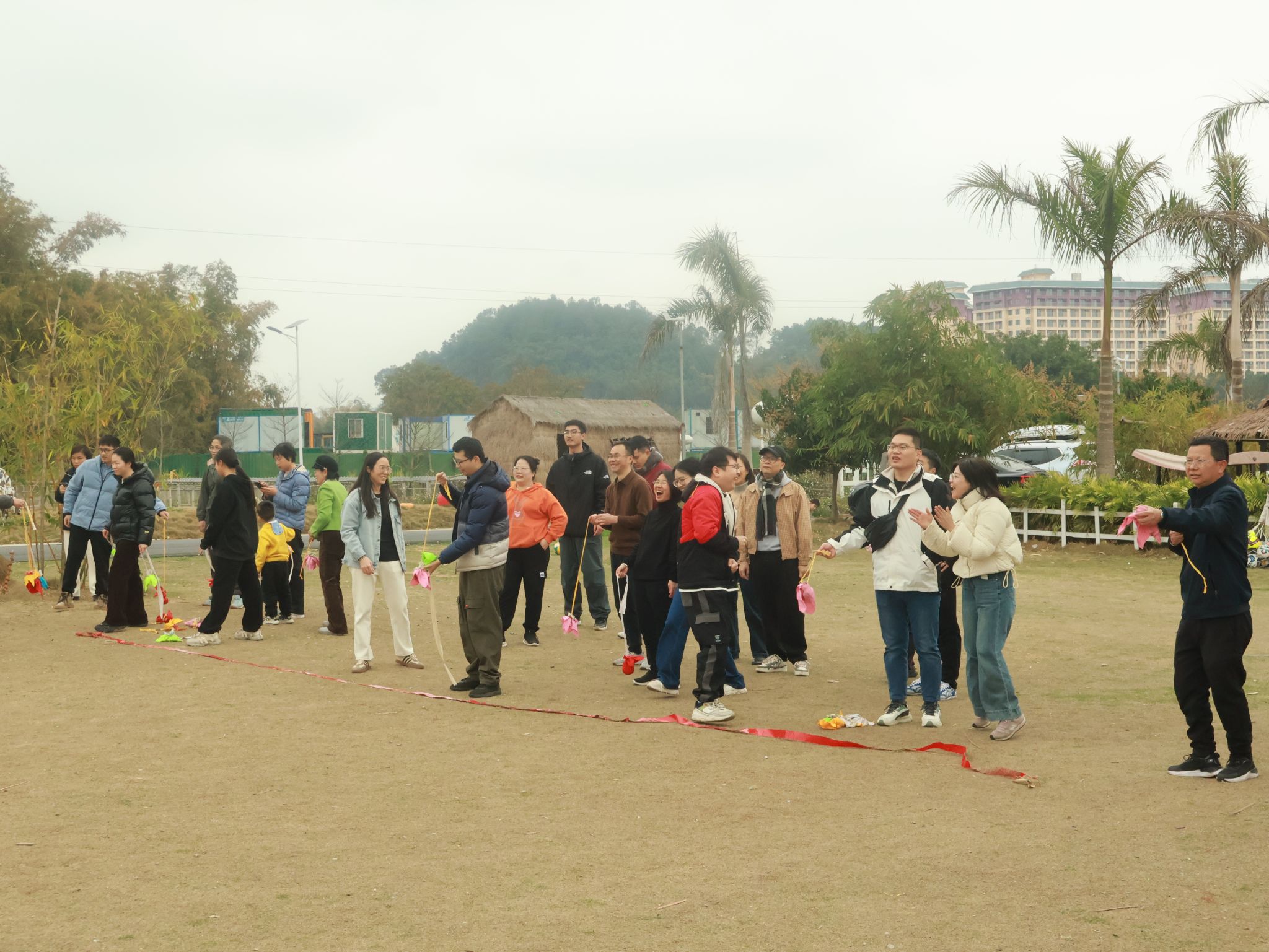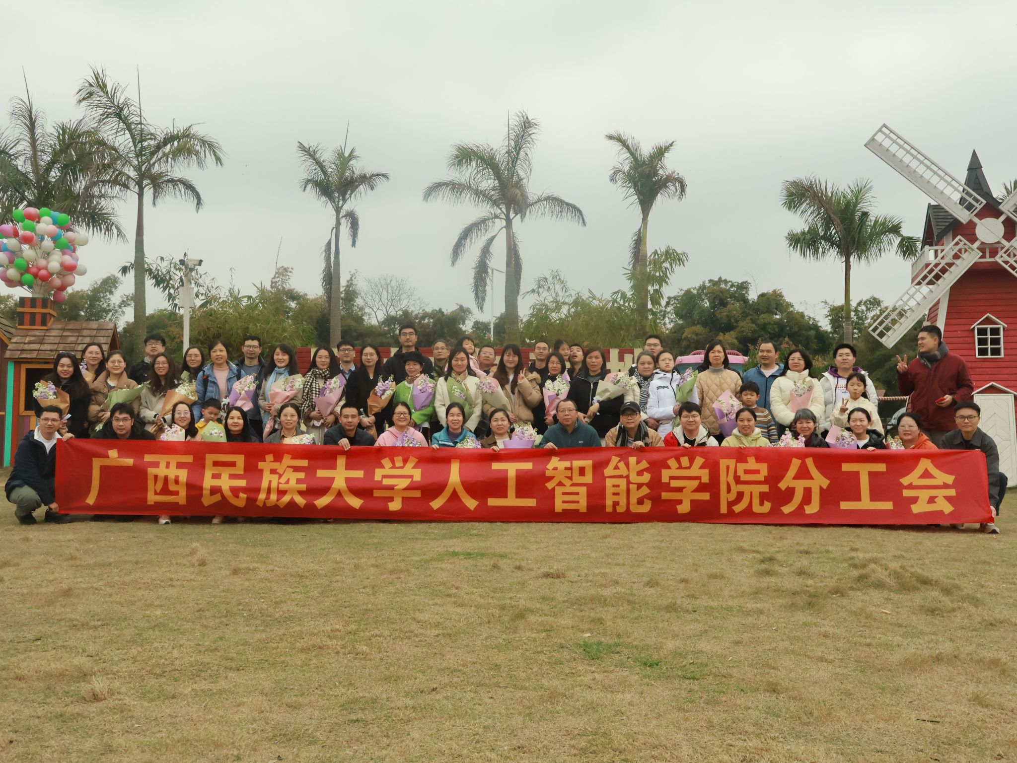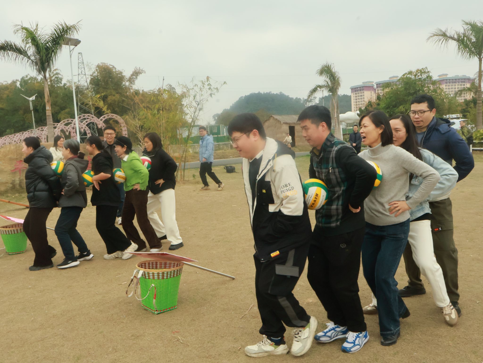 活动设置了“蛇来运转”“原地踏步”“背篓投绣球”“手工扎花”等趣味项目。“蛇来运转”环节中,老师们组成蜿蜒的队伍,在默契配合中感受团队协作的力量;“原地踏步”游戏里,老师们蒙上眼睛完成踏步挑战,在整齐的口号声中体会同事间的信任与支持;背篓投绣球的场地上,彩球纷飞,笑语不断,传递着欢乐与友谊;手工扎花环节中,花香四溢,老师们相互交流扎花技巧,随后将制作好的花束赠与在场的全体女教职工及女家属,并送上“三八”国际妇女节真挚的祝福。