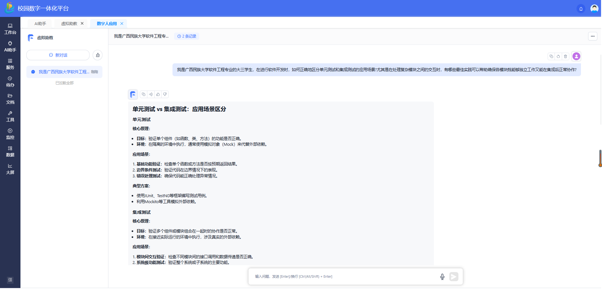 “虚拟助教”PC端页面