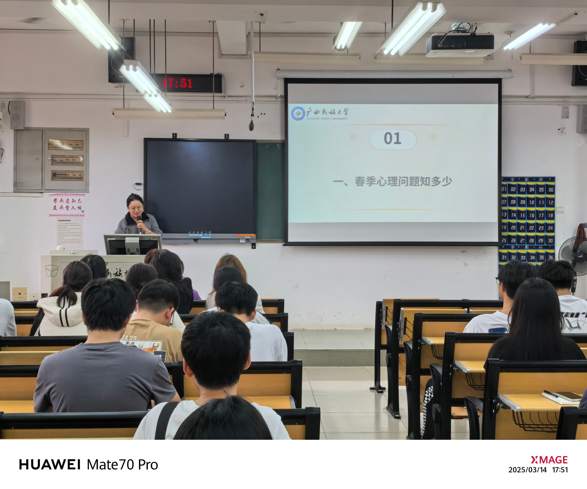 班会上,各班班主任、辅导员、心理委员围绕如下四个方面展开:一是介绍春季常见的心理问题类型及表现形式,并分析存在问题的具体原因。二是讲解典型的早期心理问题症状,教导同学们如何敏锐察觉自身的心理状态变化。三是分享多种实用的自我调节技巧,包括生物节律重建、运动处方、压力管理和艺术疗法等。四是介绍校内外的心理求助资源,鼓励同学们在遇到难以自行解决的心理问题时,及时寻求专业帮助。