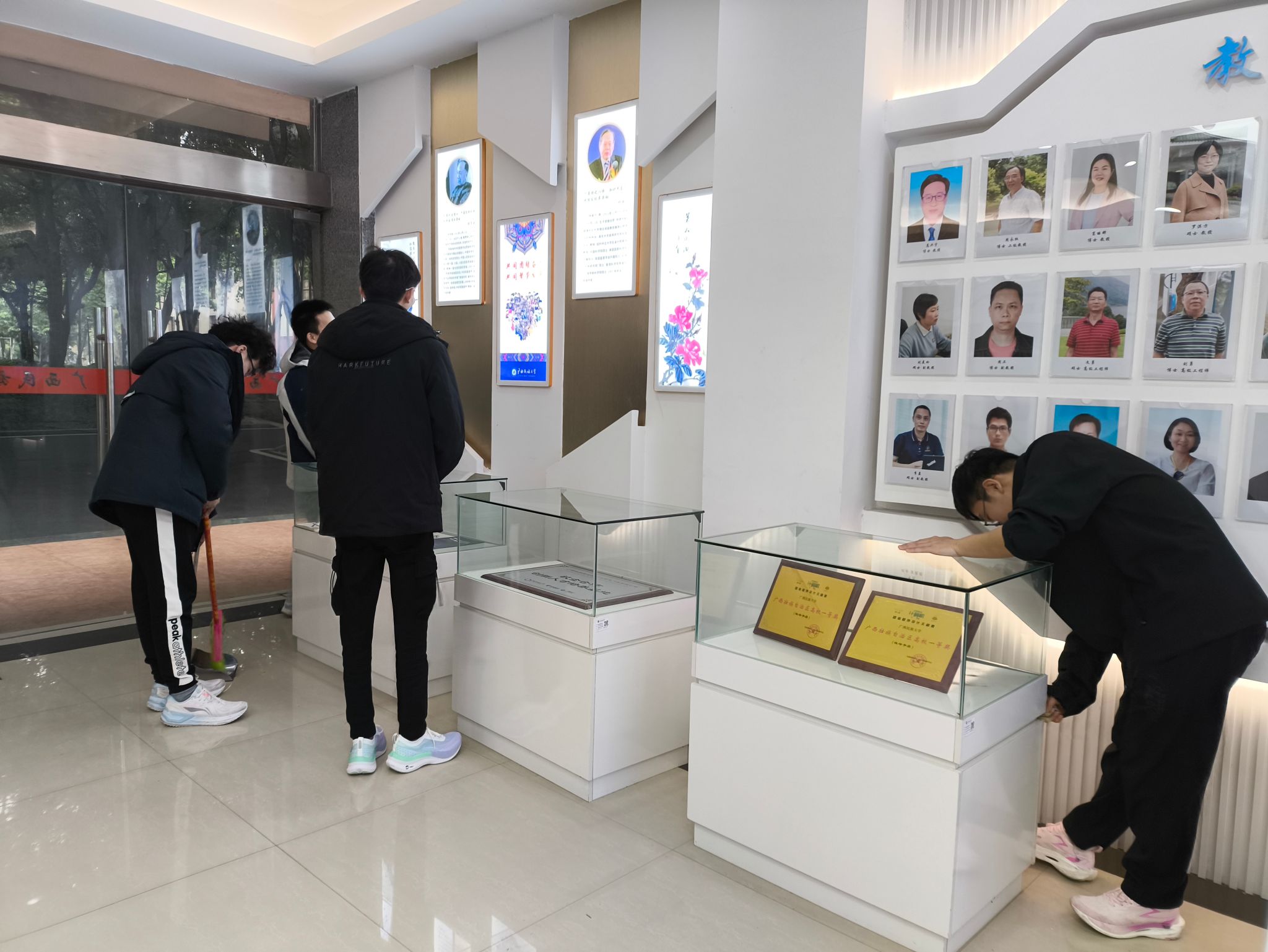 同学擦拭展台
