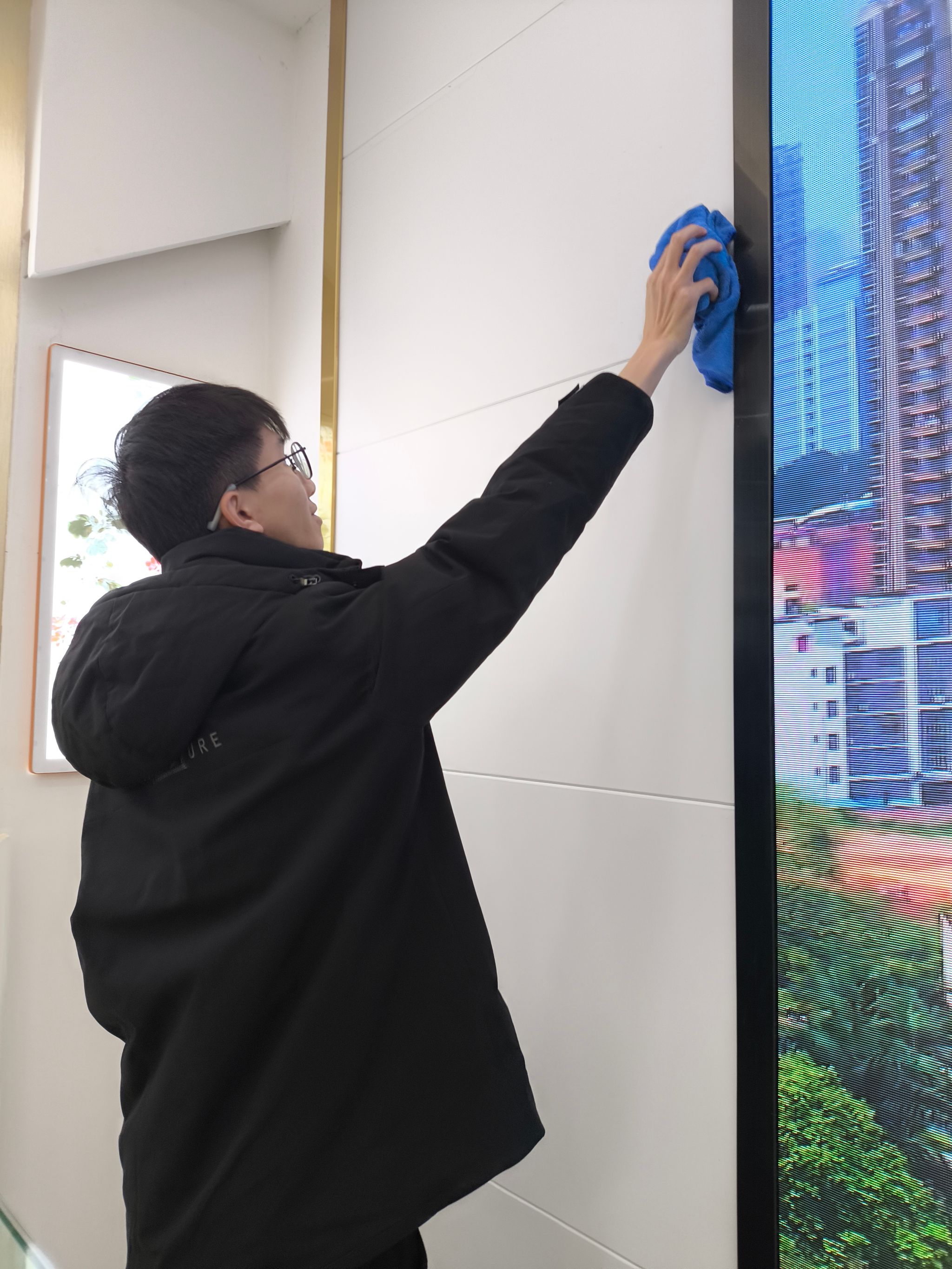 同学擦拭窗户