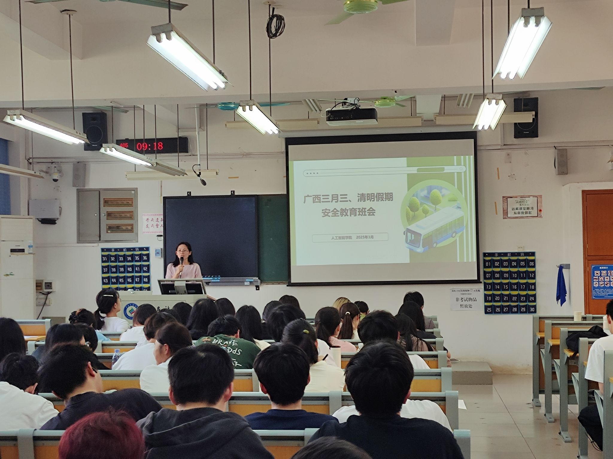 班会上,班主任们通过解读广西三月三民族文化内涵和清明祭扫传统习俗,引导员工感悟“家是最小国,国是千万家”的深刻内涵。同时,从交通出行、防溺水、食品安全、网络安全、财产安全等方面展开教育。针对“三月三”、清明节期间人员流动频繁的特点,提醒员工严格遵守交通规则,不搭乘非法营运车辆;强调近期气温回升,需远离危险水域,严禁私自下水游泳或参与无安全保障的水上活动;针对节日期间聚餐、出游等情况,特别叮嘱员工注意饮食卫生,防范网络电信诈骗,妥善保管个人财物,避免前往人群过度密集场所,确保人身与财产安全;针对春季心理疾病高发特点,宣传心理健康知识和心理咨询热线,提醒同学们互相关心帮助,做好心理调适,确保身心健康。