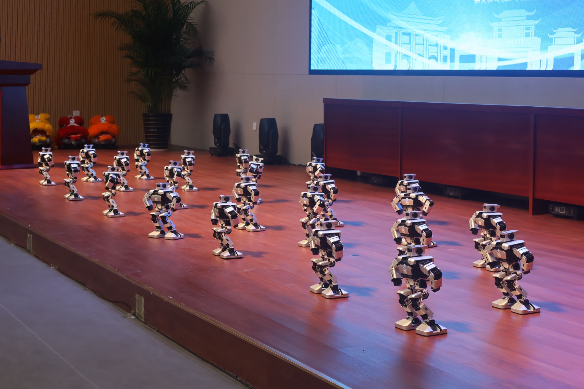 3月28日下午,公司于研习基地二楼报告厅举办william威廉英国官网具身智能研究中心成立揭牌仪式暨学术研讨会。活动现场,由公司李承云老师指导、三十余名员工组成的“智行先锋队”进行机器人舞蹈展示。