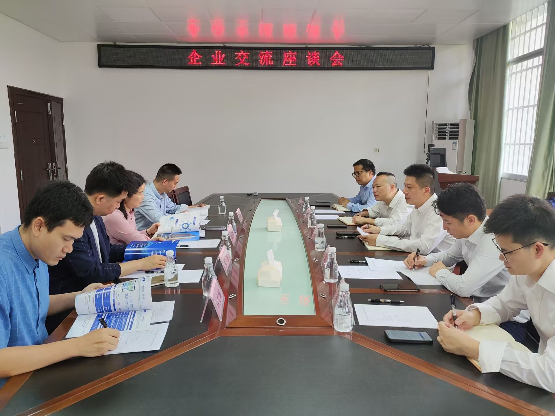 葛经理向刘学董事长介绍了公司团队队伍、团队建设、人才培养、人工智能领域发展成果等内容,并表示公司将长期致力于推动人工智能技术的创新与应用。刘学董事长详细介绍了公司的发展历程、业务布局及战略规划。马永前副经理汇报了公司政务智能客服项目的技术架构、应用场景及目前取得的阶段性成果。在交流环节,双方围绕人工智能技术应用与产业发展、校企合作模式、项目对接、人才培养等方面进行深入交流并达成初步共识。