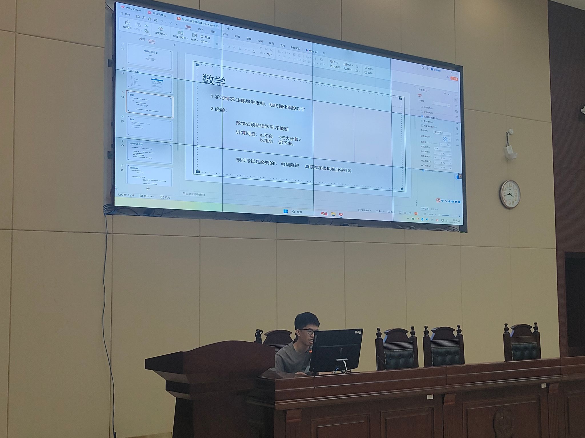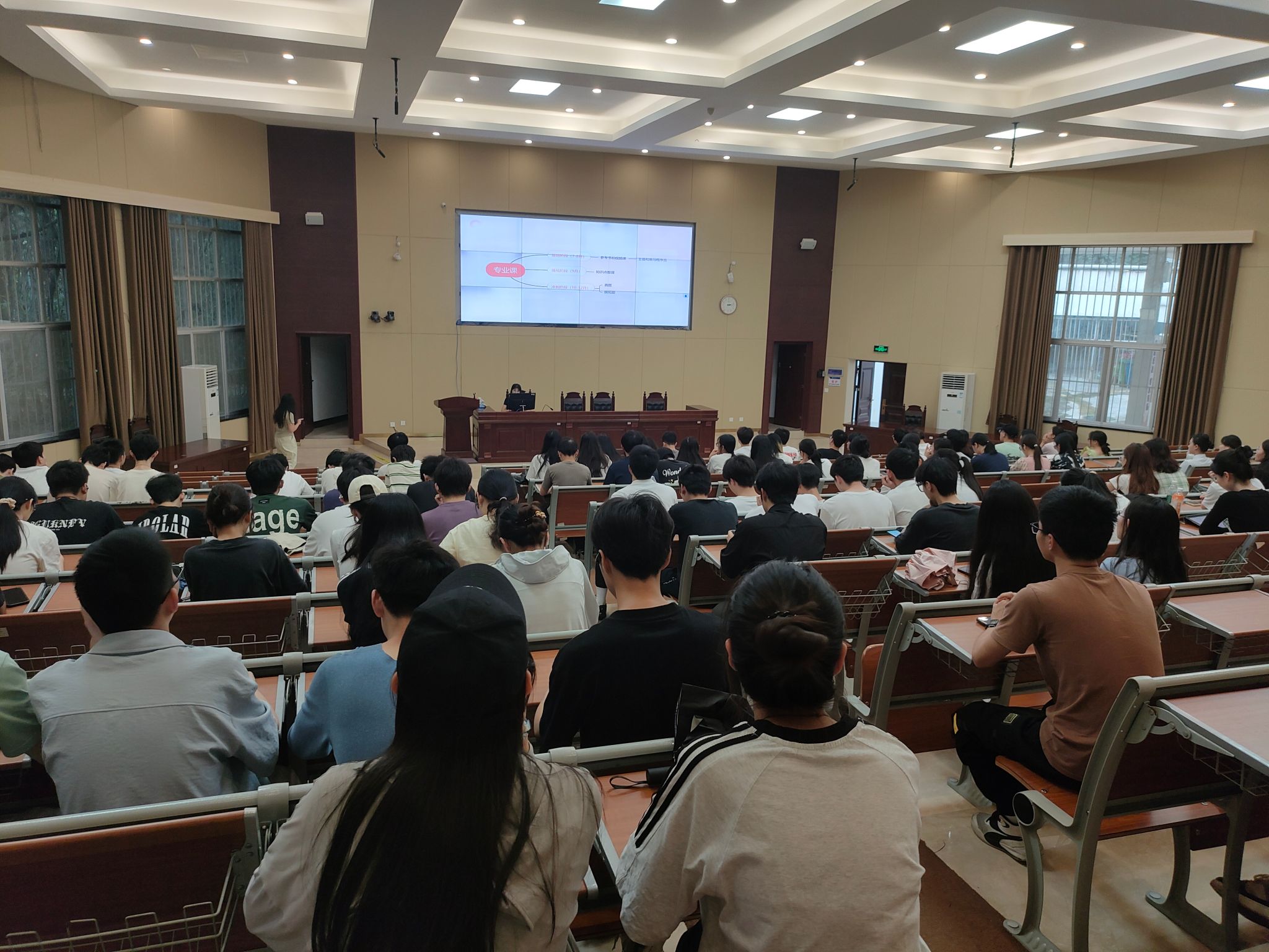 考研经验分享环节,银诗梅、刘京鑫、周强、赵建华等4名同学结合自身经历,详细介绍了院校选择、备考过程中的时间规划、科目复习策略、心态调整等方面内容。同时,特别强调了坚持的重要性,鼓励同学们树立明确的目标,并为之不懈努力。