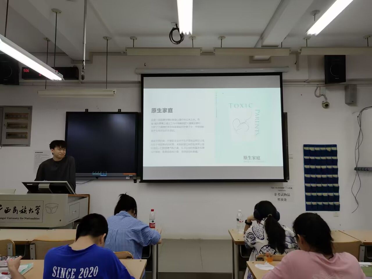 2023级人工智能2班的徐宝康同学分享了《原生家庭》。他以电视剧《都挺好》中苏明玉的经历为切入点,引发同学们对原生家庭影响的共鸣。他深入剖析了《原生家庭生存指南》《原生家庭心理学》等多本相关书籍的核心观点,探讨了原生家庭对人格塑造的影响,以及语言暴力、过度控制等带来的心理创伤。他还分享了从疗愈到重建的方法,鼓励同学们完成“家庭角色写作”,与父母坦诚沟通,打破代际创伤的循环,书写属于自己的人生新剧本。