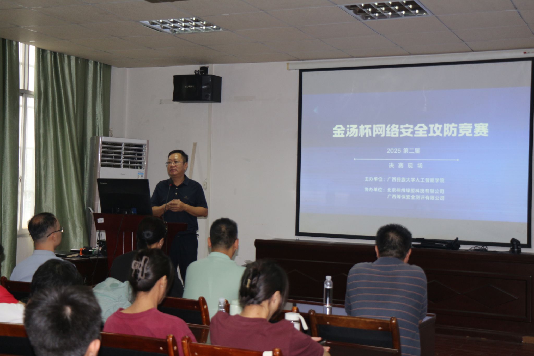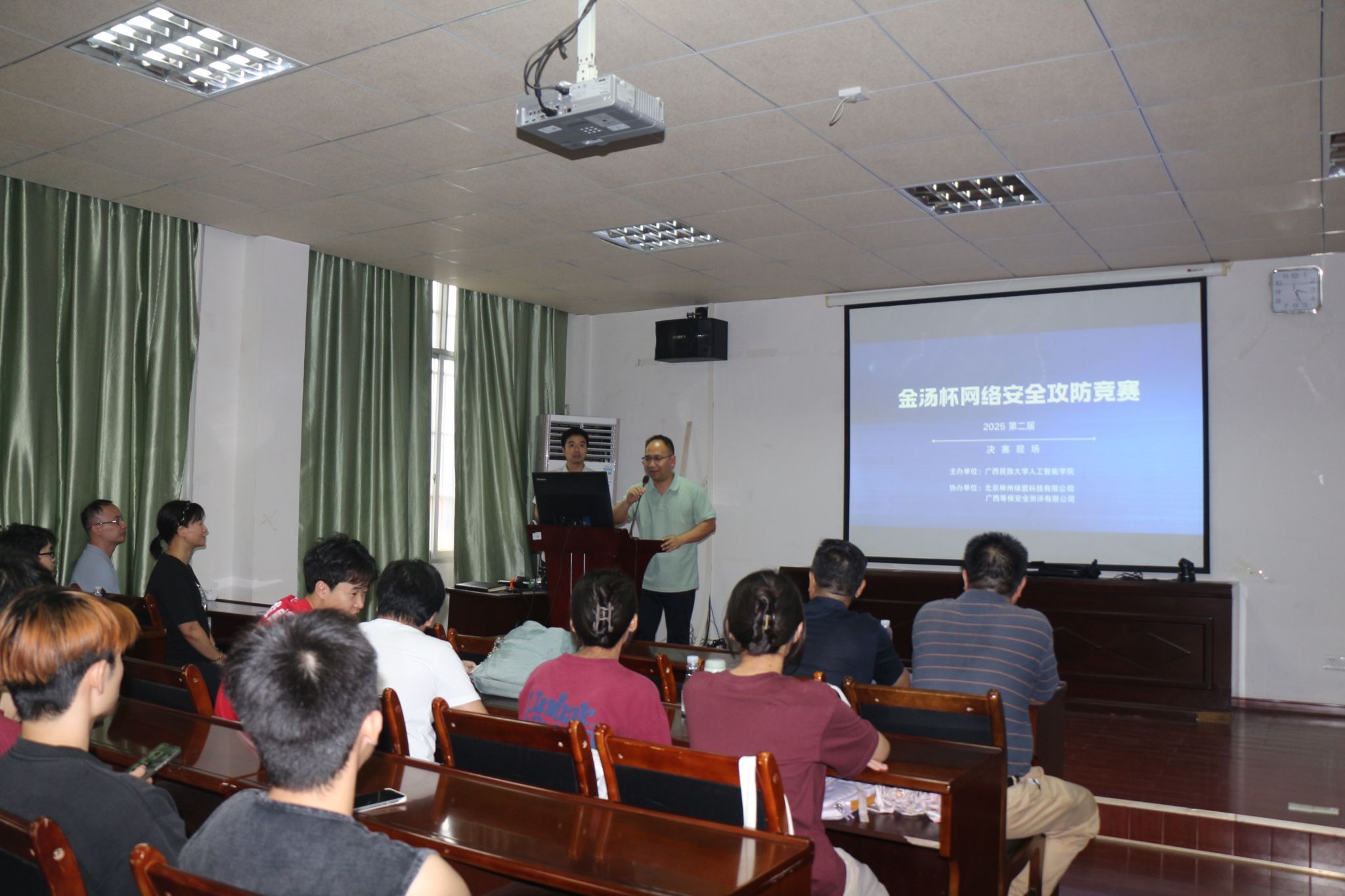 5月10日,由教务处与公司联合举办的william威廉英国官网第二届“金汤杯”网络安全攻防竞赛决赛于博达楼圆满结束。本次比赛获得来自北京神州绿盟科技有限公司、广西等保安全测评有限公司的大力支持。
