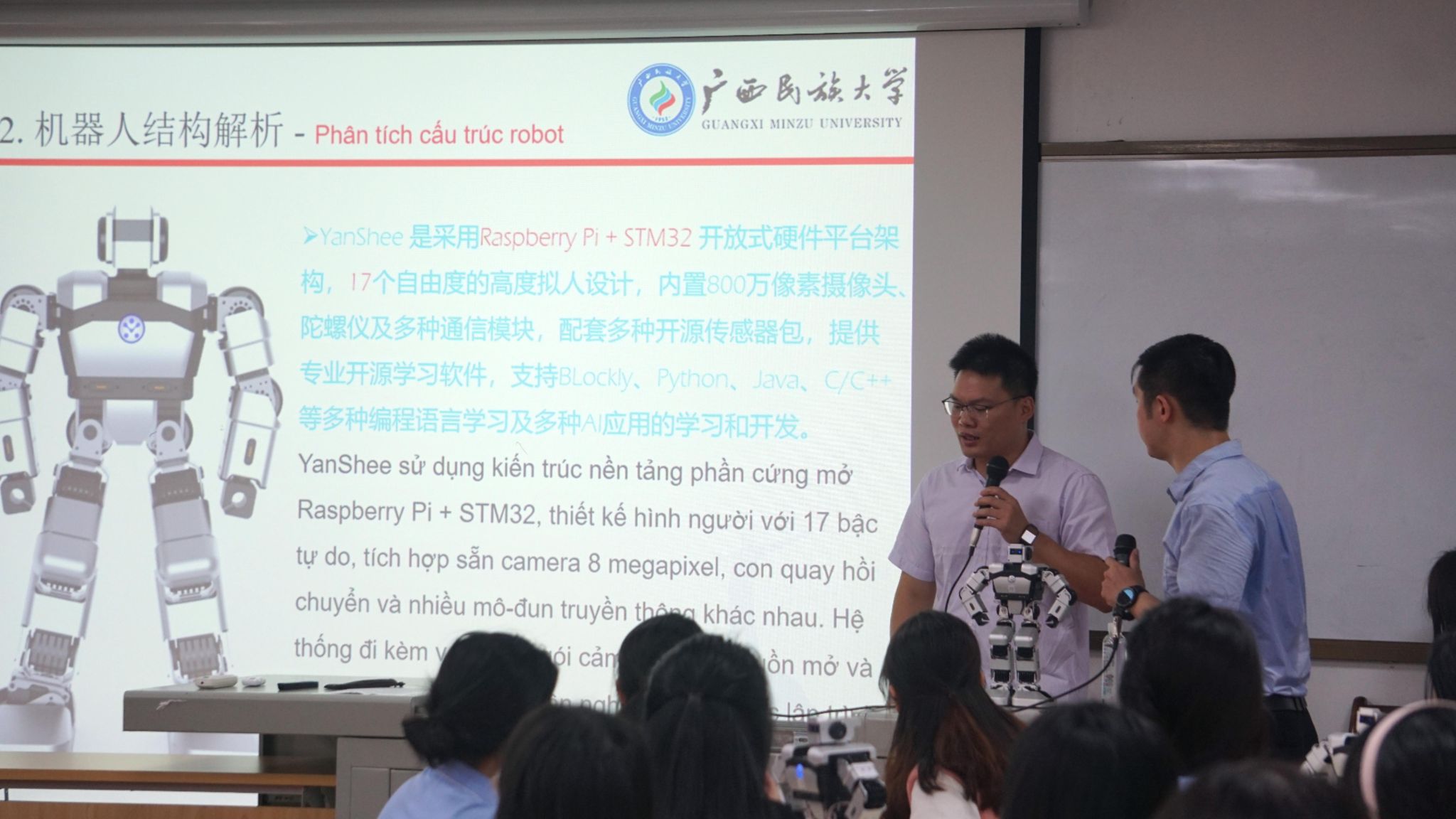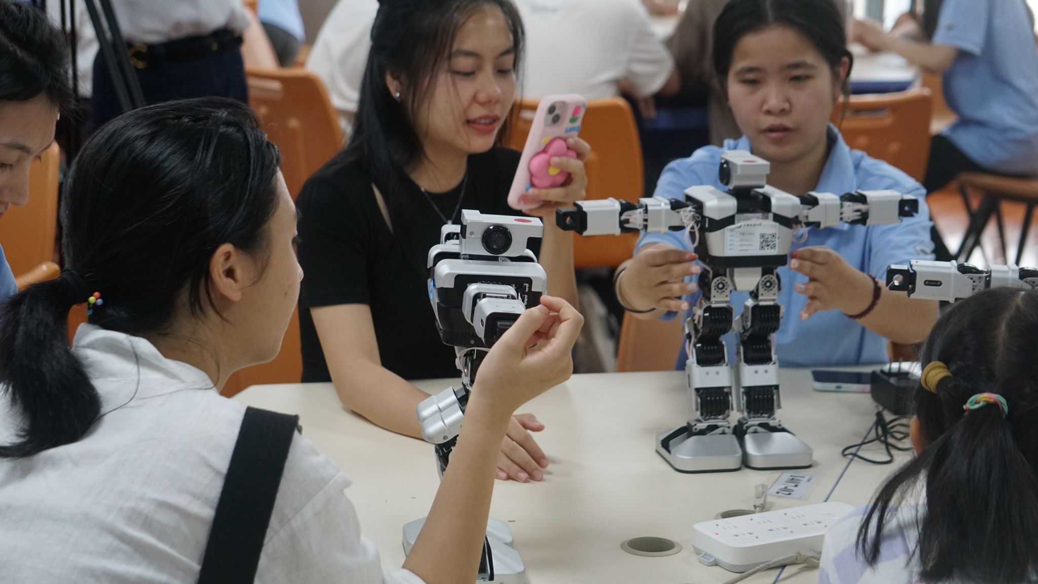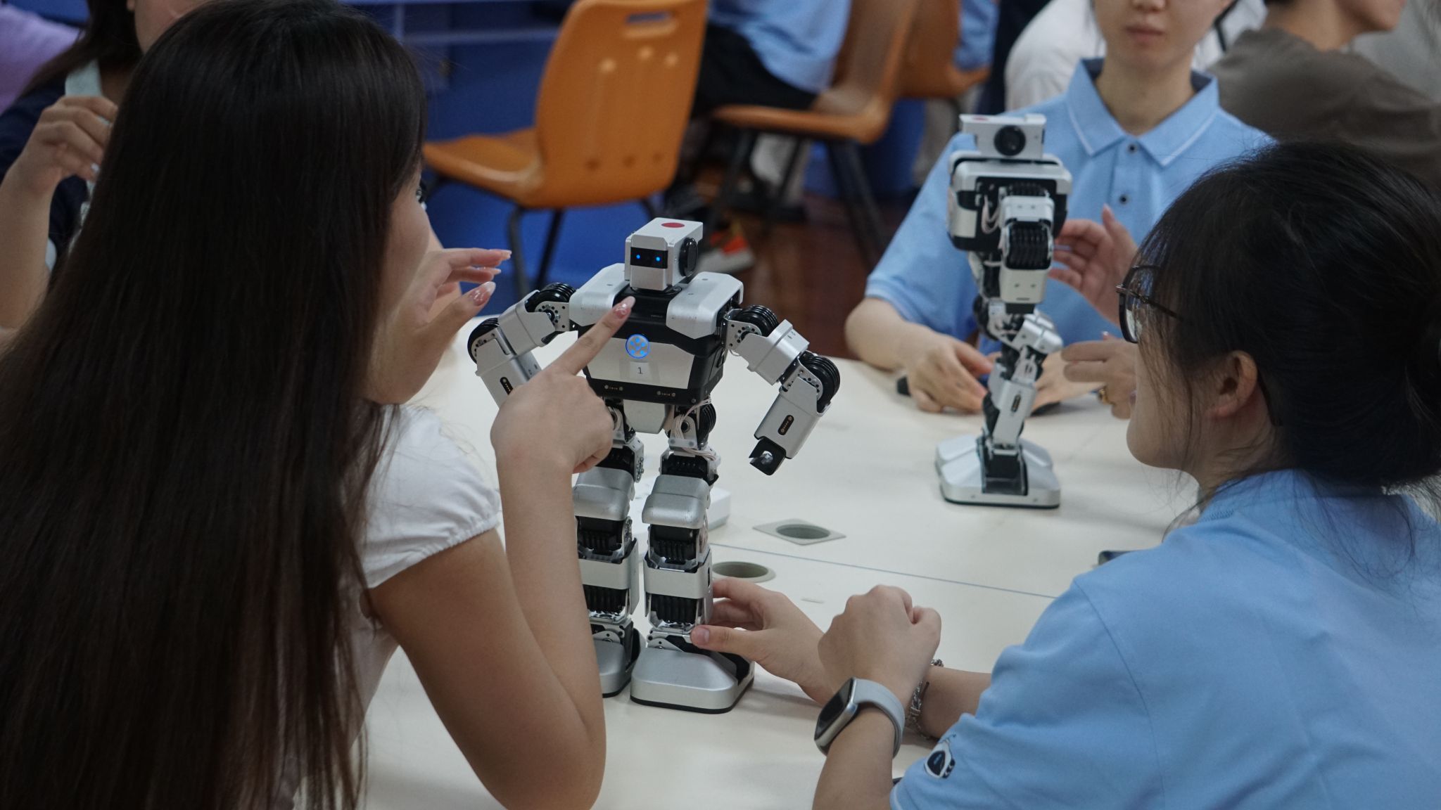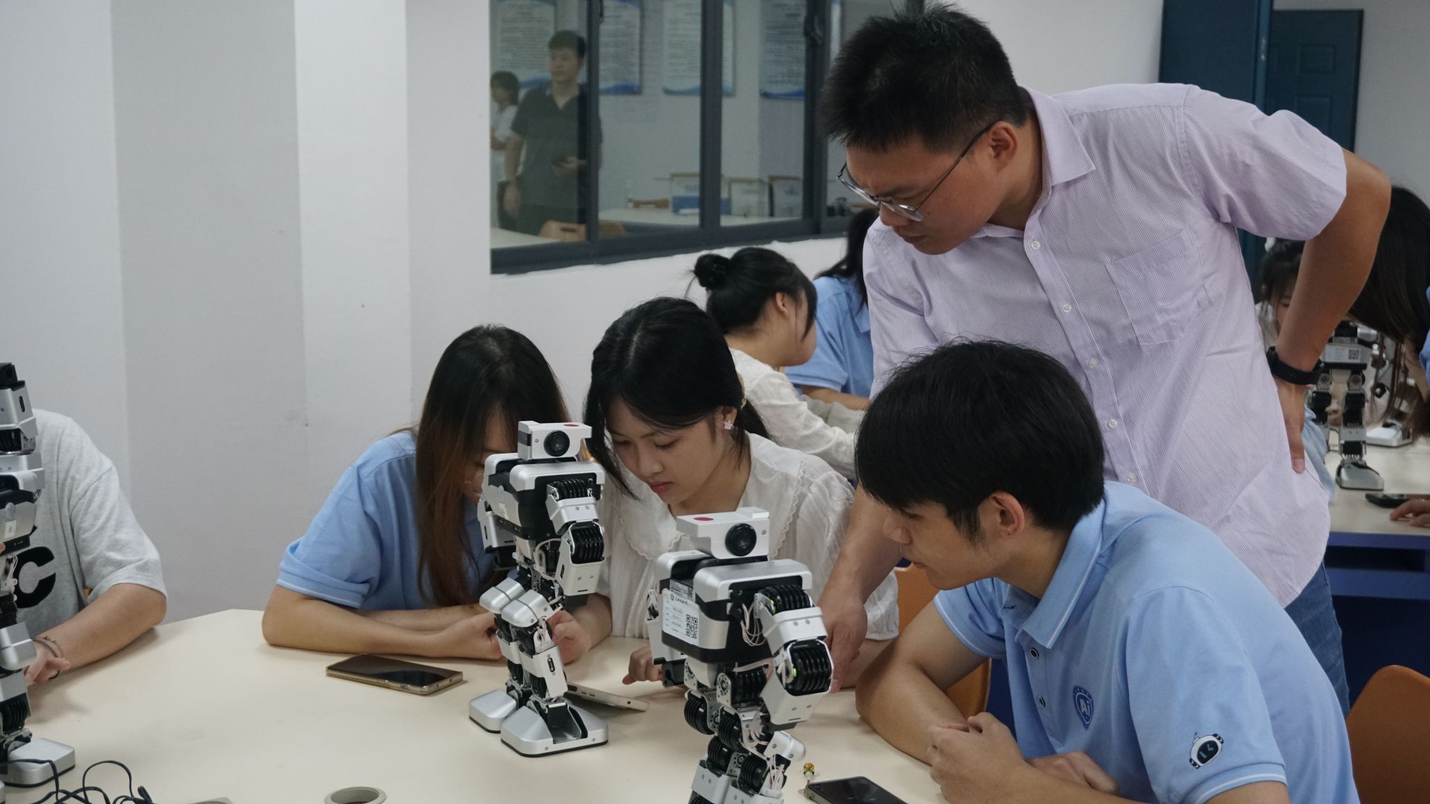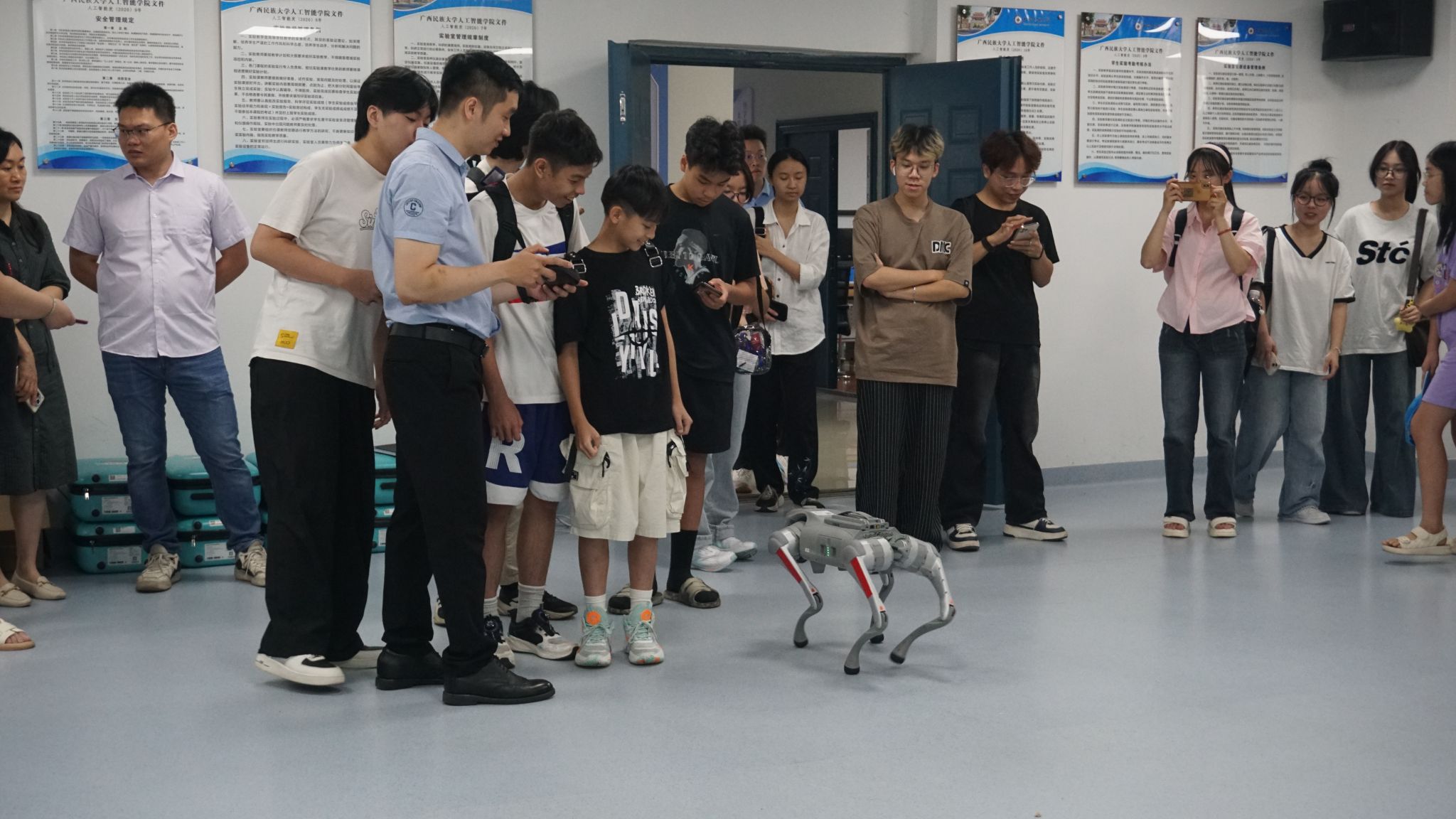 6月22日,公司教师郭泉博士率先带来《人工智能的影响与未来趋势》前沿科技讲座,以生动案例与详实数据,深入浅出地剖析人工智能发展脉络,引得越南青年代表频频提问,现场互动热烈。黄华娟等10位教师与中越青年围坐一堂,开展圆桌交流会。6月24日,李承云博士负责的“人形机器人结构分析与舞蹈控制”团队实践项目,将活动推向高潮。中越青年共同参观体验了机器人、机器狗等前沿人工智能产品,亲手操作、亲眼见证科技的神奇,惊叹声与欢笑声此起彼伏。