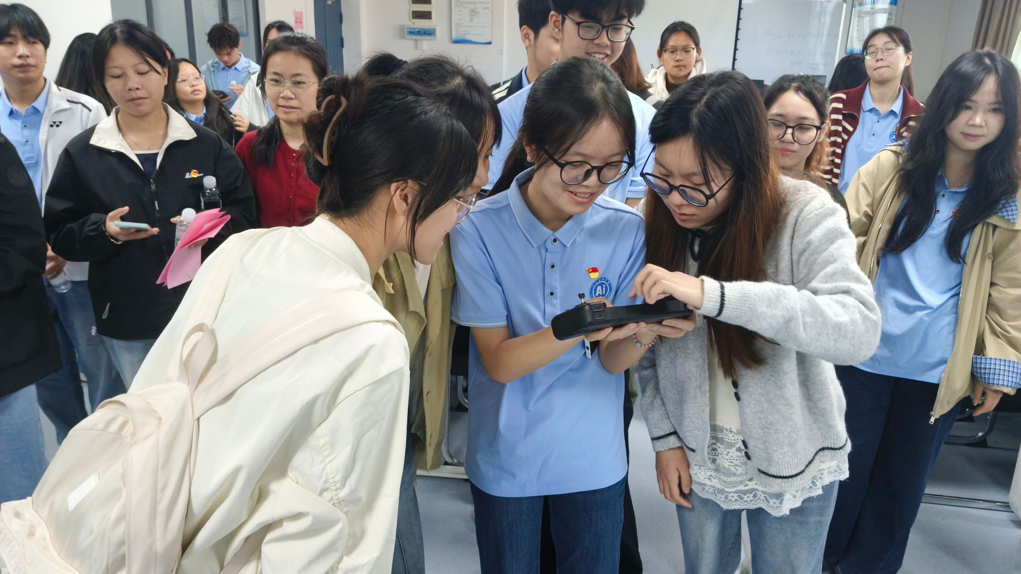 交流结束后,活动进入专业实践展示环节。公司本科生第四党支部党员充分发挥学科优势,向广西中医药大学的同学们生动讲解了实验室机器人与智能机器狗的工作原理及前沿应用,并通过实物演示、动手操作与互动答疑,带领大家“零距离”感受人工智能技术的魅力。