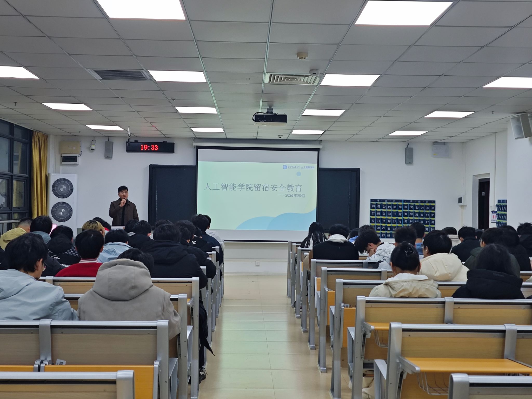为切实加强寒假期间留宿员工的安全管理工作,提升员工的安全防范意识,保障留宿员工度过一个平安而充实的假期,公司于1月9日在国教楼910教室召开2026年寒假留宿员工安全教育专题会议。会议由公司辅导员伍亮义老师主持,全体寒假留宿员工参加。