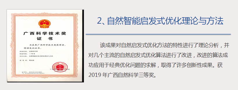 教学科研成果—自然智能启发式优化理论与方法获2019年广西自然科学三等奖