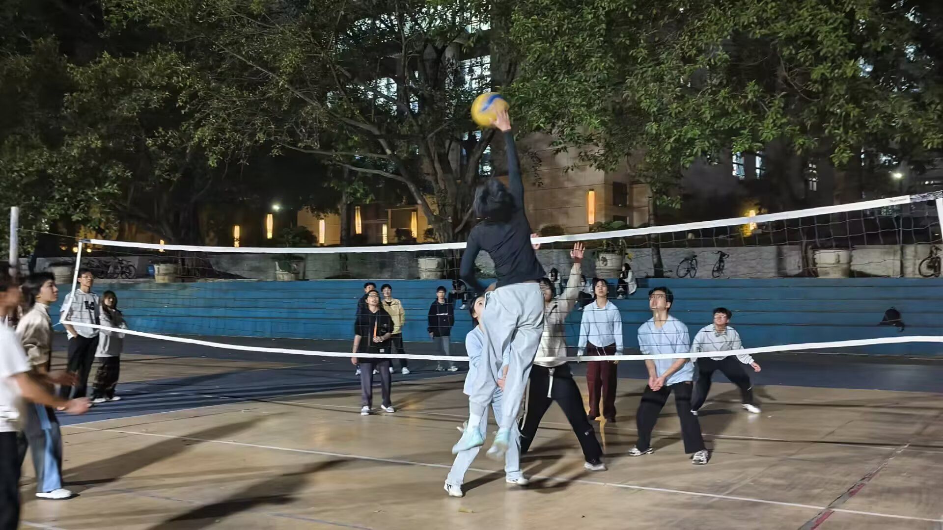赛场上,各参赛队伍士气高涨。发球手们屏气敛息,精准发力,大力跳发、巧妙飘球等发球方式纷纷登场,强劲的发球给对手施加压力。球员们也全神贯注,目光紧随着排球轨迹,飞身鱼跃救球的场景屡见不鲜,每一次成功救起都引得观众欢呼。其中,在小组赛中,2021级联队的同学们表现亮眼,通过球员间的默契配合,良好的战术规划,在进攻时屡屡突破对方防线,赢得观众们的阵阵喝彩。