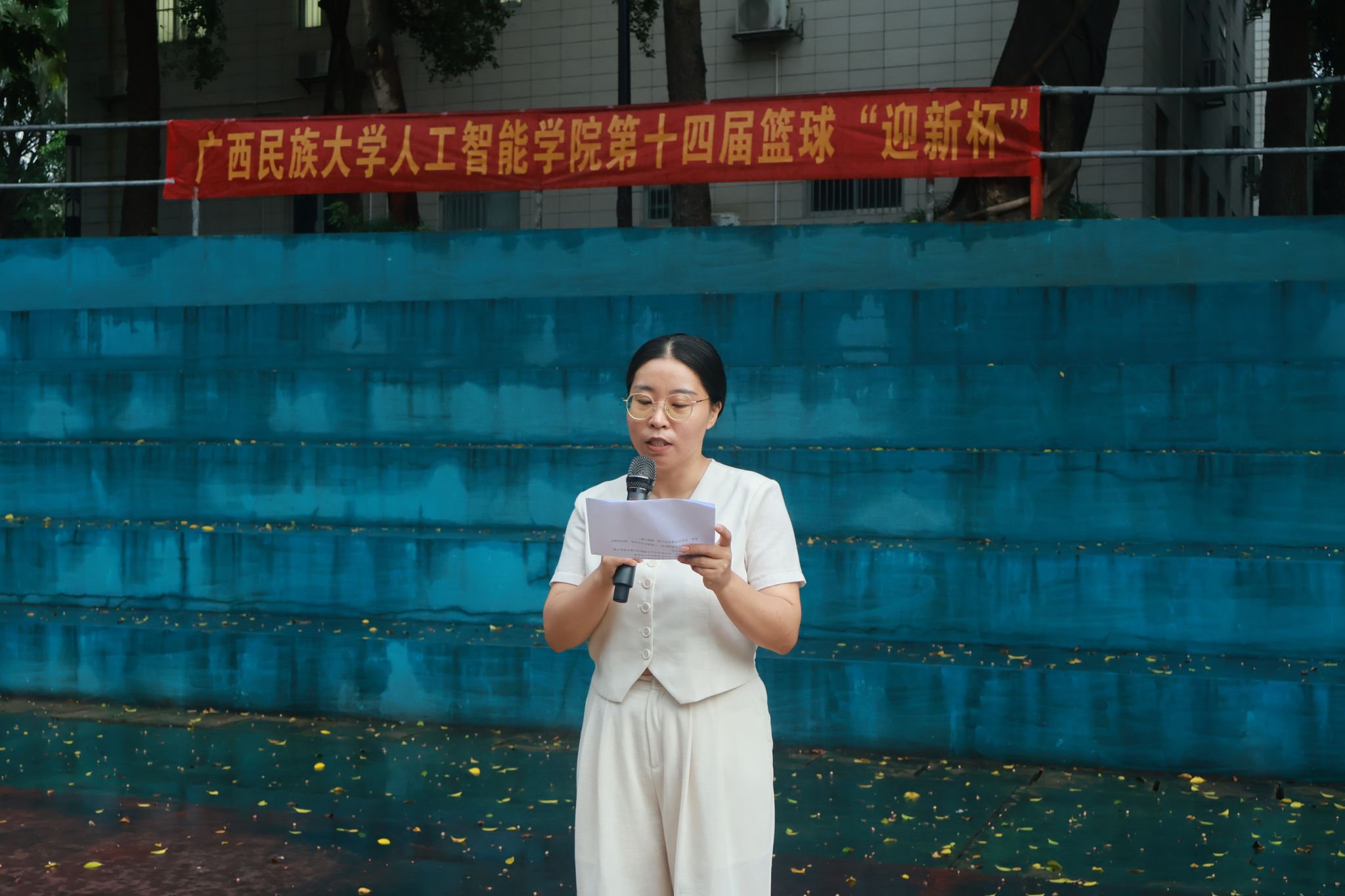 随后,2024级人工智能1班的黄仪行同学作为裁判员代表发言。他郑重承诺,将恪守体育职业道德,严格执行竞赛规则,坚持公平、公正的执裁原则,努力为运动员提供良好的竞赛环境,确保本届篮球赛裁判工作顺利进行。