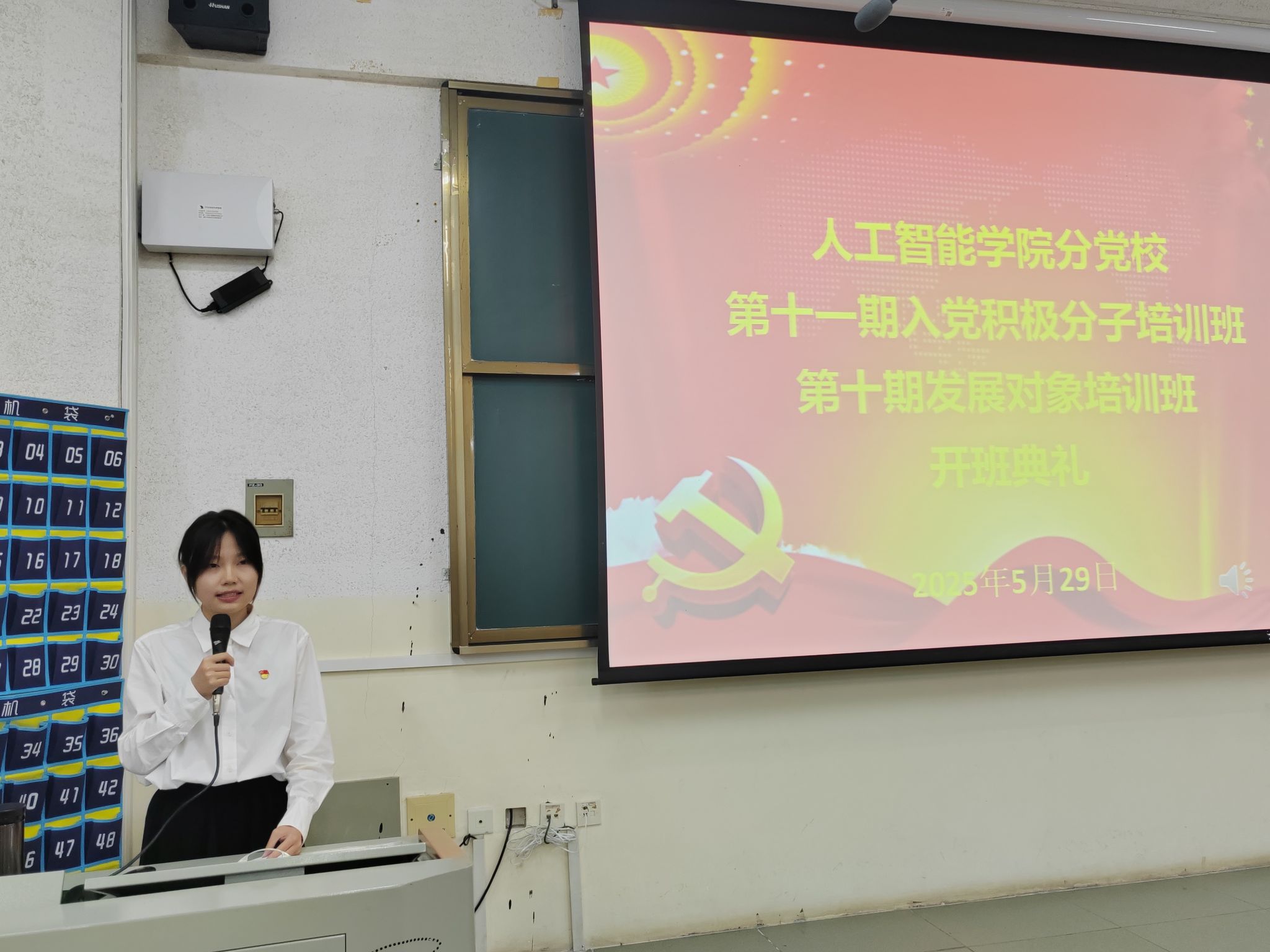 本次开班仪式在庄严的国歌中拉开帷幕。2024级软件工程1班石婷婷代表本期党校培训班学员发言。她向全体学员发出倡议:一是端正态度,以饱满的热情和认真的态度投入到学习中去;二是知行合一,将所学知识与实践相结合;三是遵守纪律,服从管理,共同营造一个良好的学习氛围。2023级信息安全1班李佳作为党员代表发言时说:“作为新时代的老员工党员,我们要做理想信念的坚守者,用党的创新理论武装头脑;做勤学善思的排头兵,以过硬本领服务社会发展;做知行合一的实干家,在志愿服务、创新创业中展现担当。”