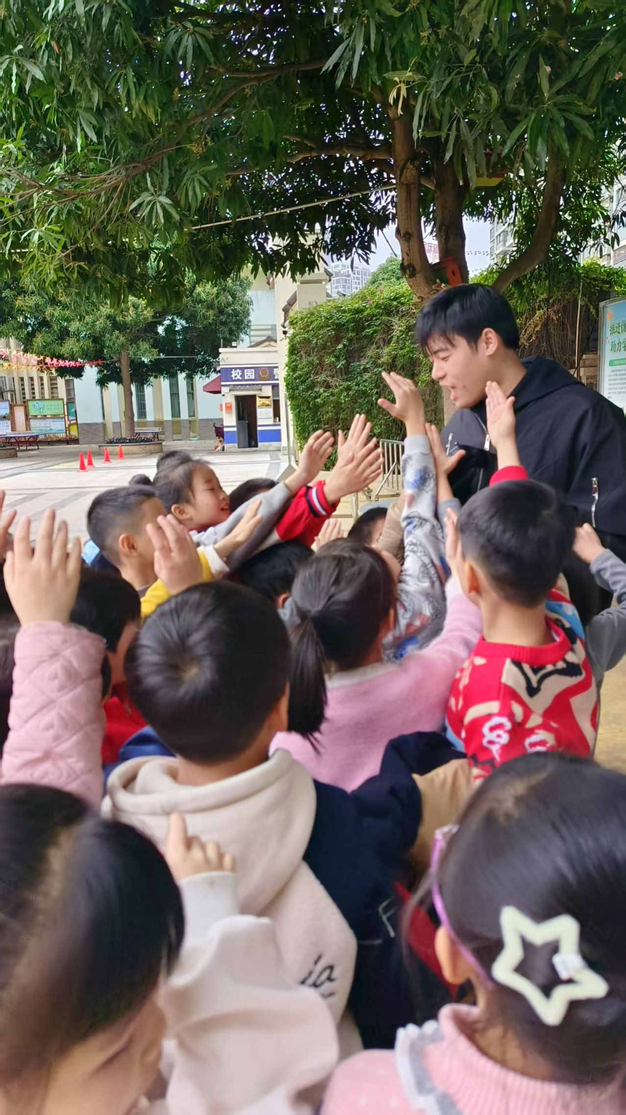 活动中,黄浩杰同学详细地为小朋友们讲解和展示了机器狗的各项功能,从稳步行走、疾速奔跑等基础动作,到后空翻、障碍跳跃等高难度技能,机器狗的精彩表演引得现场惊叹连连。林龙、莫金卫同学用通俗易懂的语言,深入浅出地向小朋友们揭秘机器人和机器狗的运行原理,小朋友们听得津津有味。在最后的互动环节,同学们邀请每一位小朋友都尝试自己操控机器狗,让孩子们在动手间体会人工智能的魅力,兴奋的欢呼声此起彼伏,将活动氛围推向了高潮。