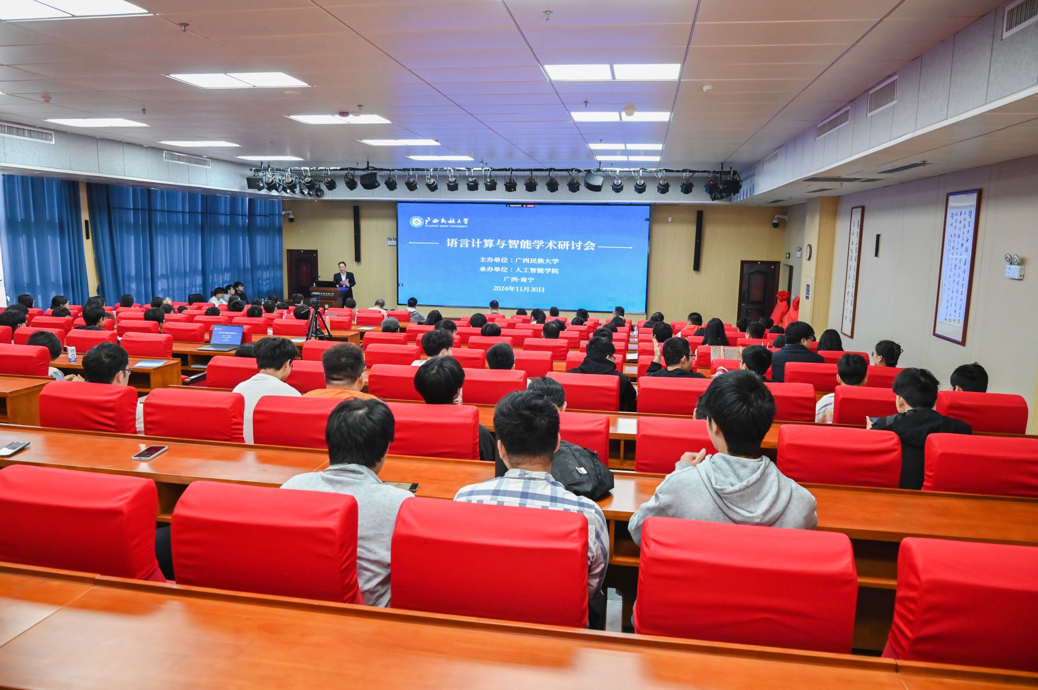 11月30日上午,公司在相思湖校区图书馆13楼报告厅举行语言计算与智能学术研讨会。自治区教育厅语言文字工作处调研员韦方奇,我院经理葛丽娜、副经理秦董洪出席研讨会。会议由公司赵地副教授主持,有关领导、专家学者及公司部分师生参加研讨会。